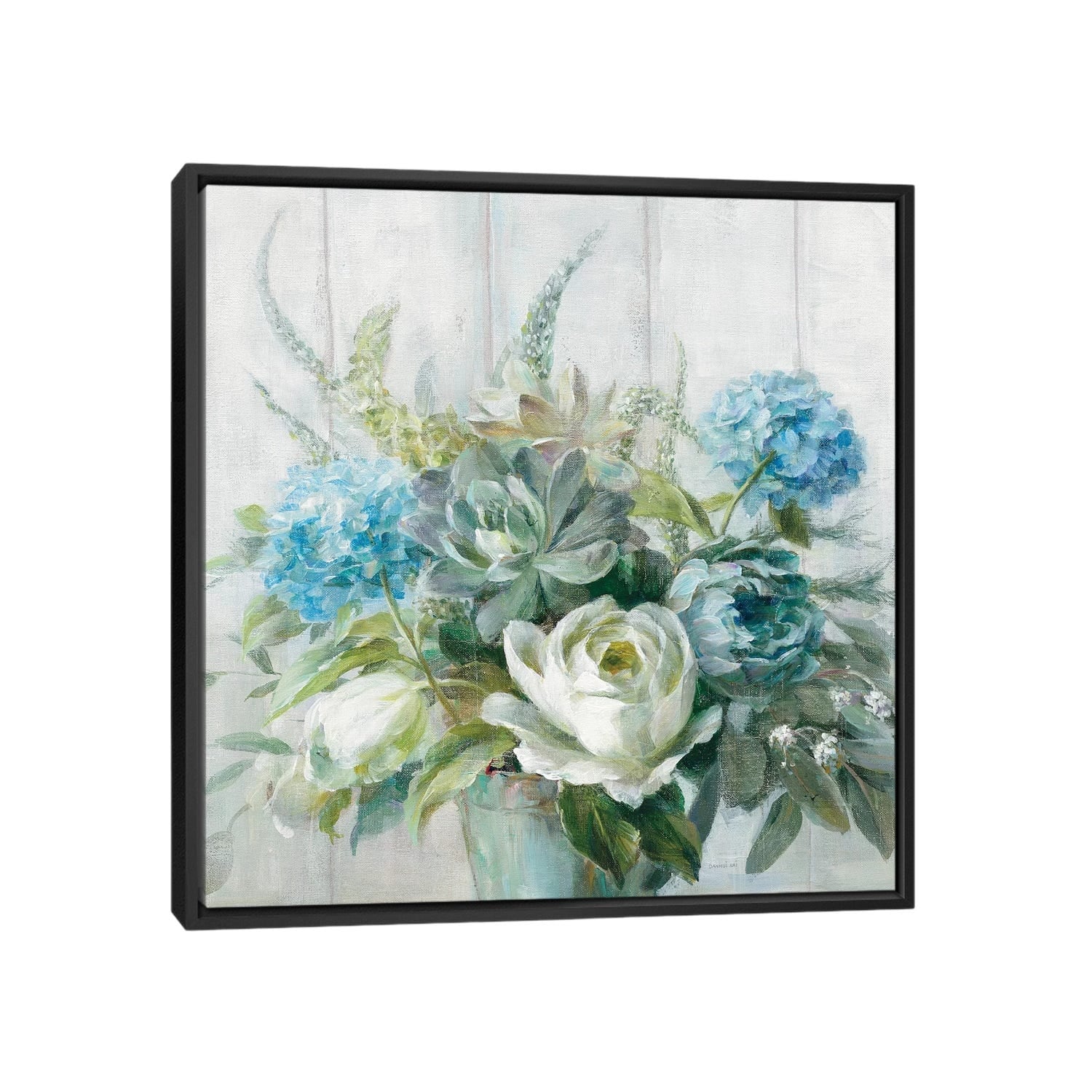 iCanvas "Morning Bouquet Blue Gray Crop" by Julia Purinton Framed
