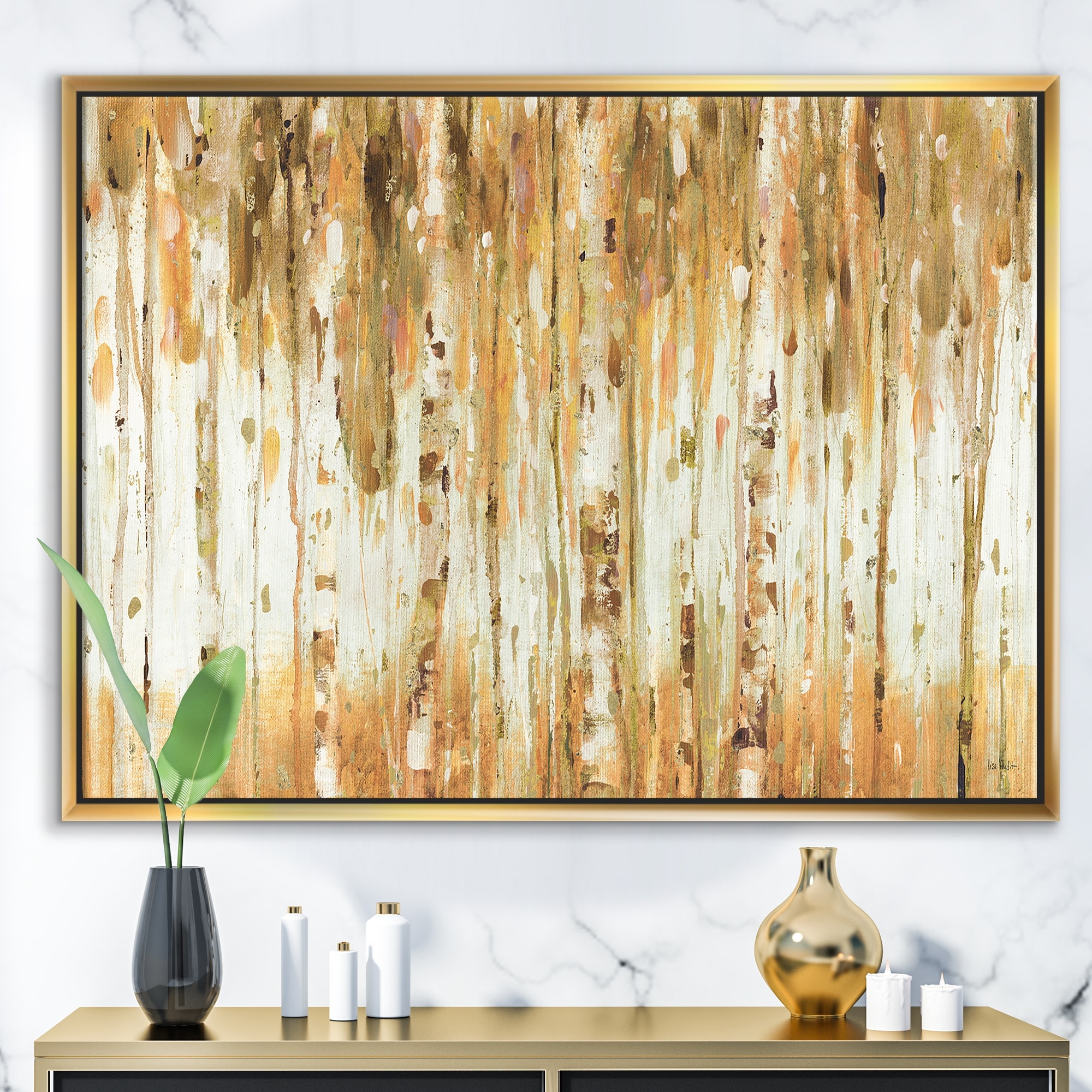 Designart "The Forest I Fall Crop" Glam Framed Canvas - Brown