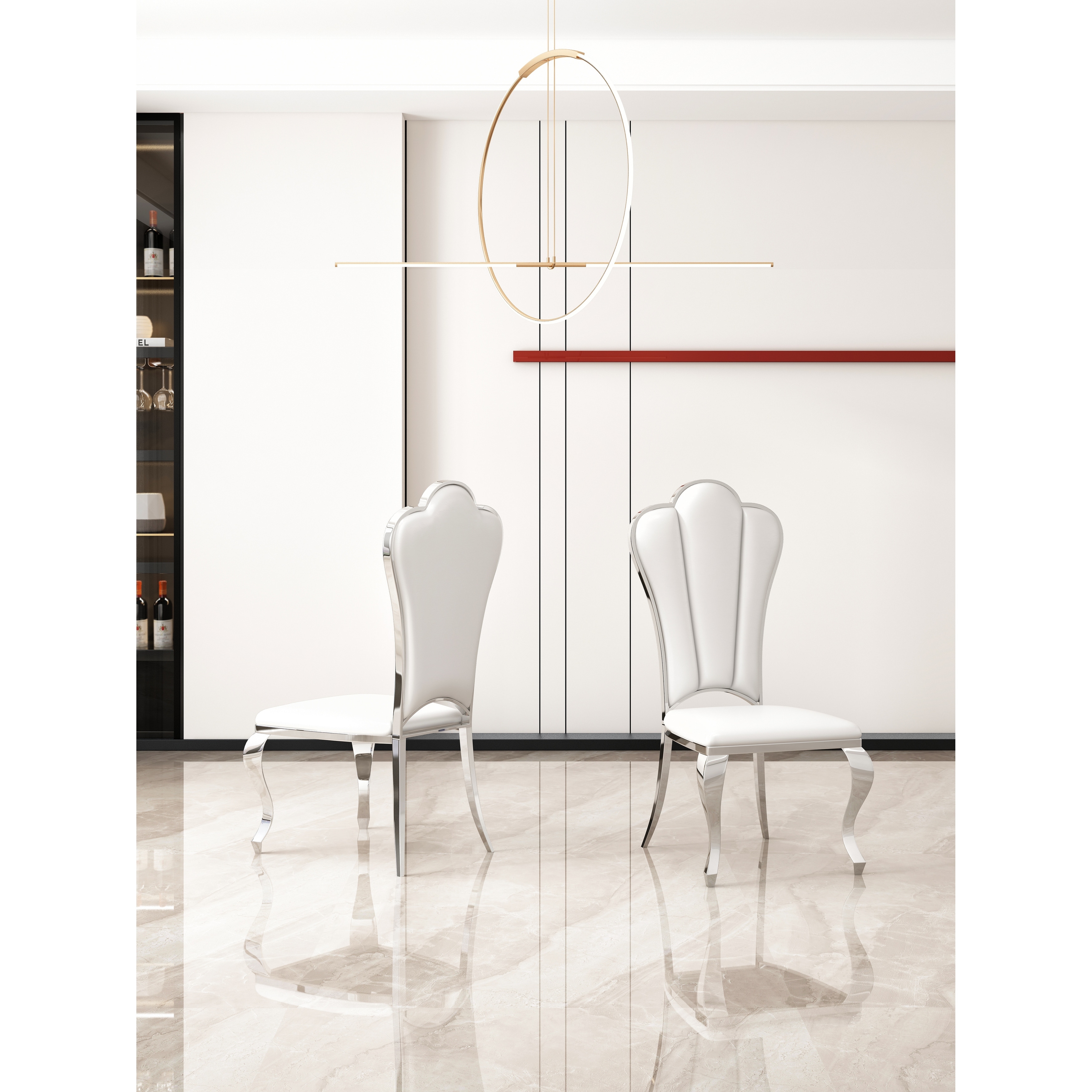 Modern Leatherette Dining Chairs Set of 2 Unique Backrest Side Chairs with Stripe Armless Chair for Living Dining Room