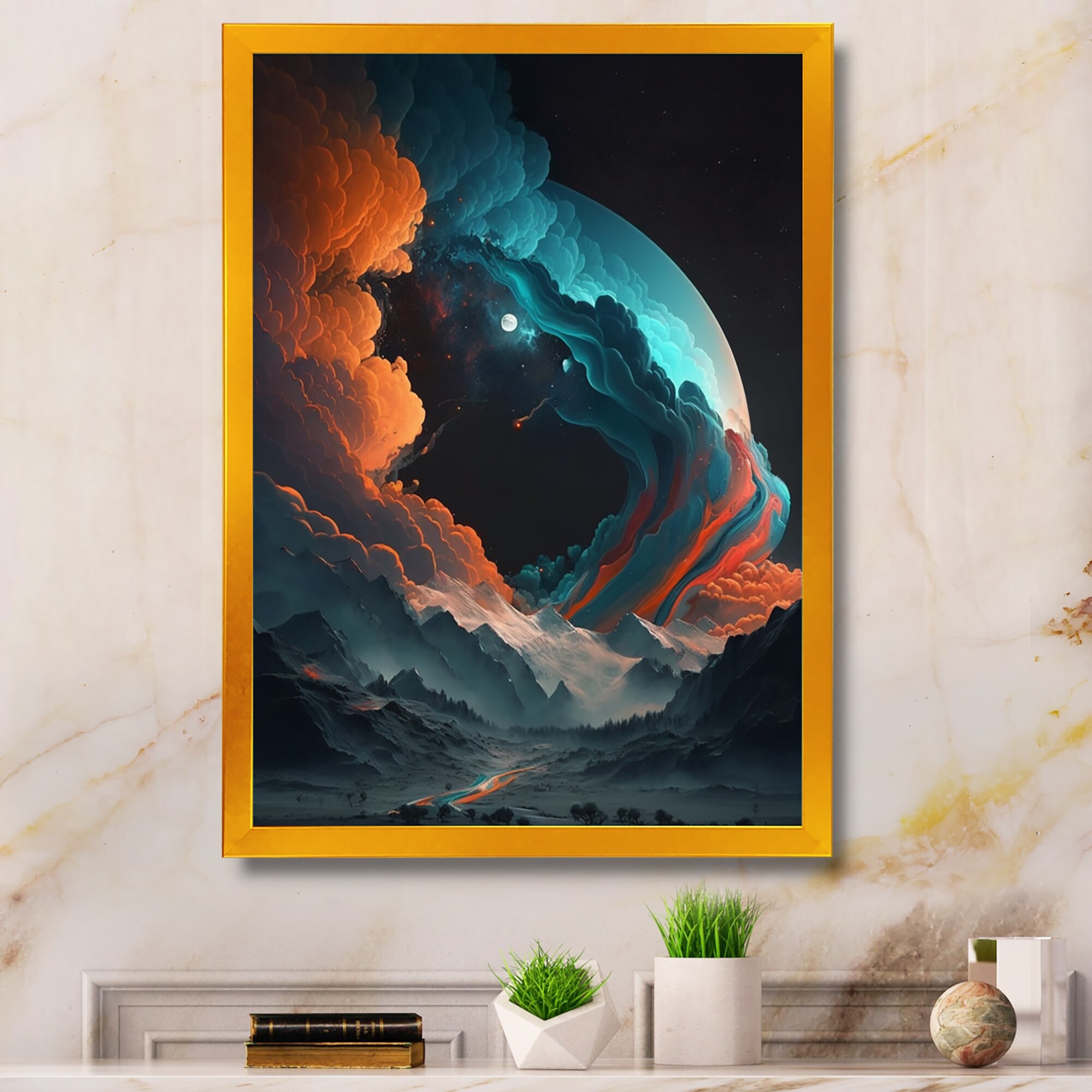 Designart "Futuristic Landscape Galaxy I" Outer Space Framed Art Print