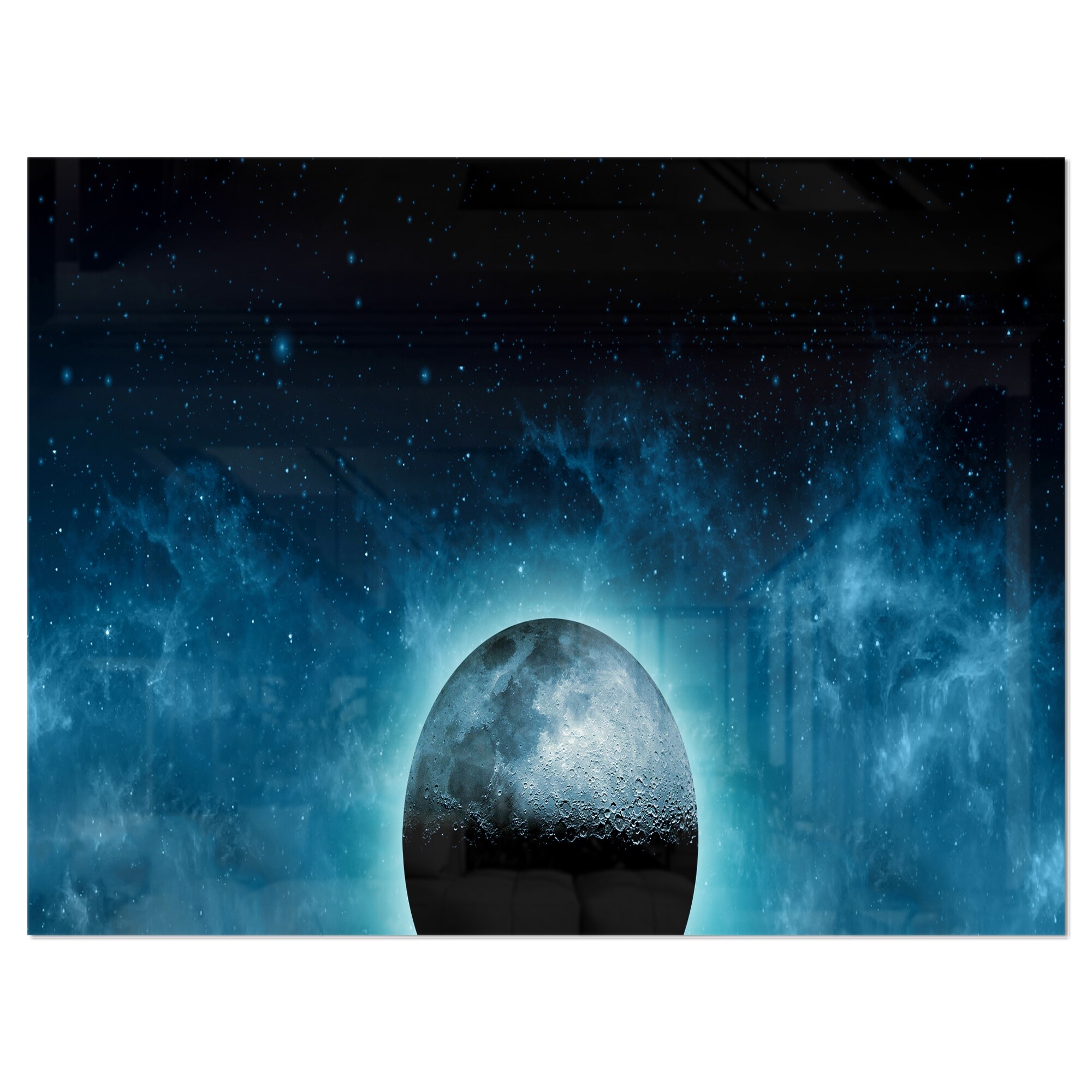 Moon in the Front of Galaxies - Extra Large Glossy Metal Wall Art Landscape