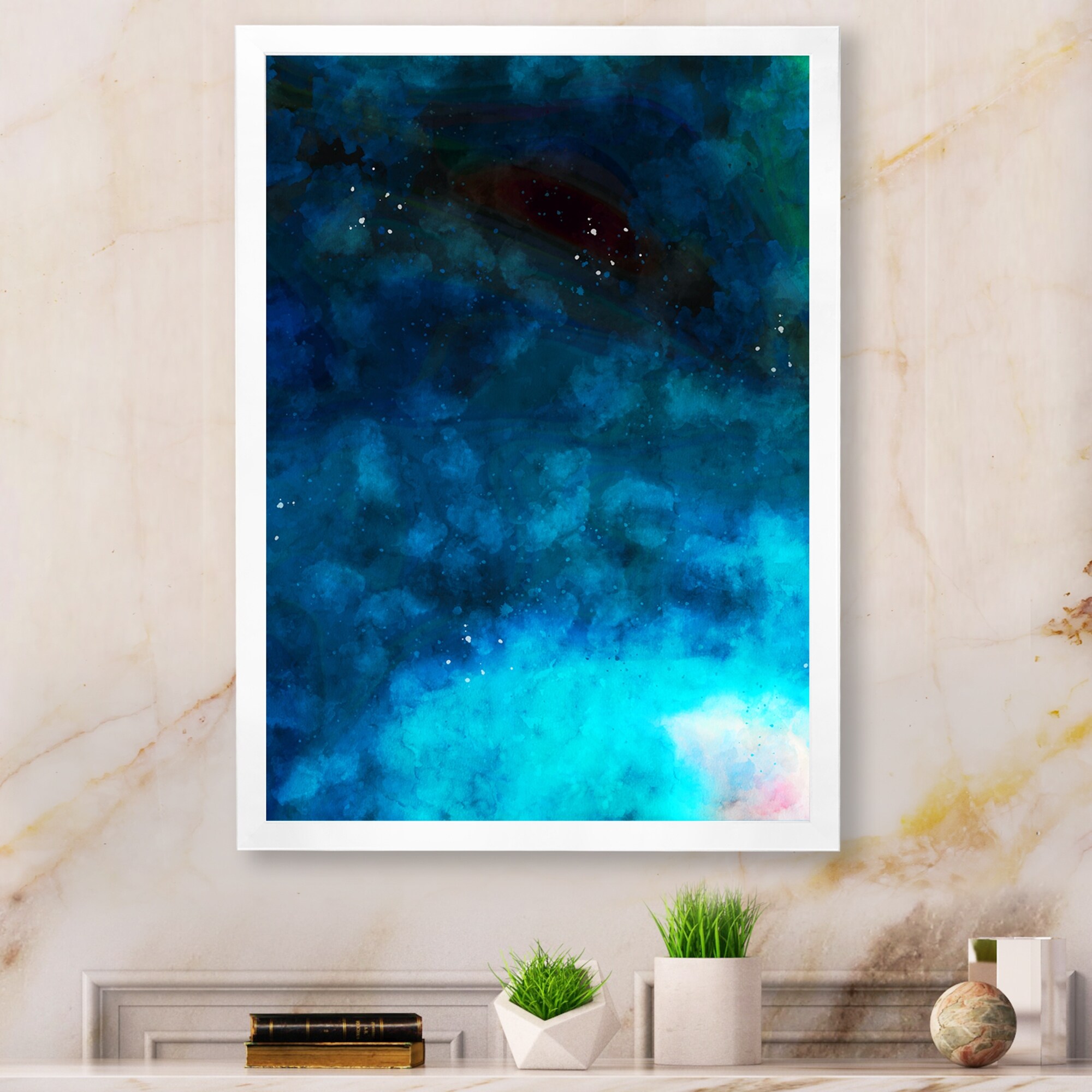 Designart "Abstract Blue Galaxy" Modern Framed Art Print