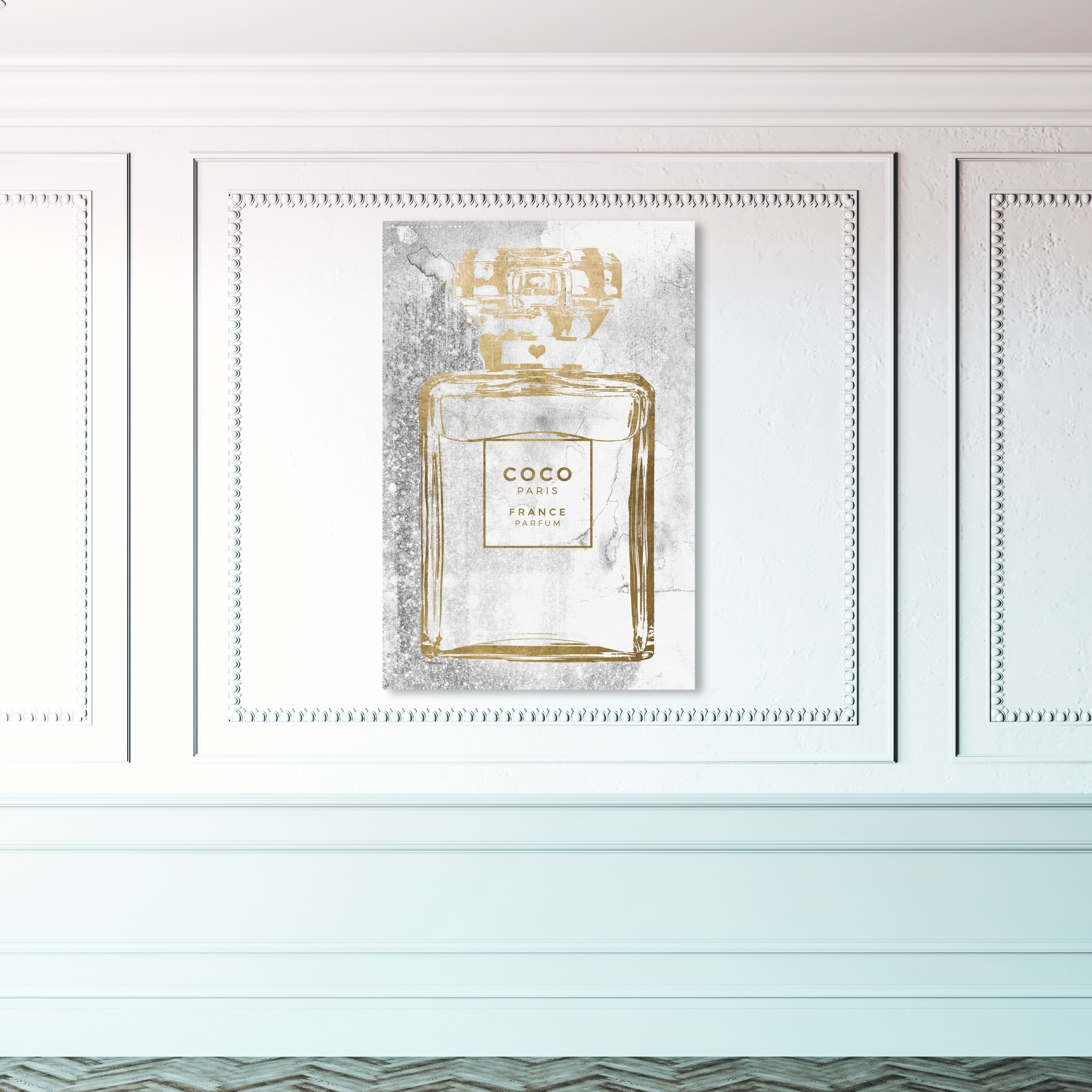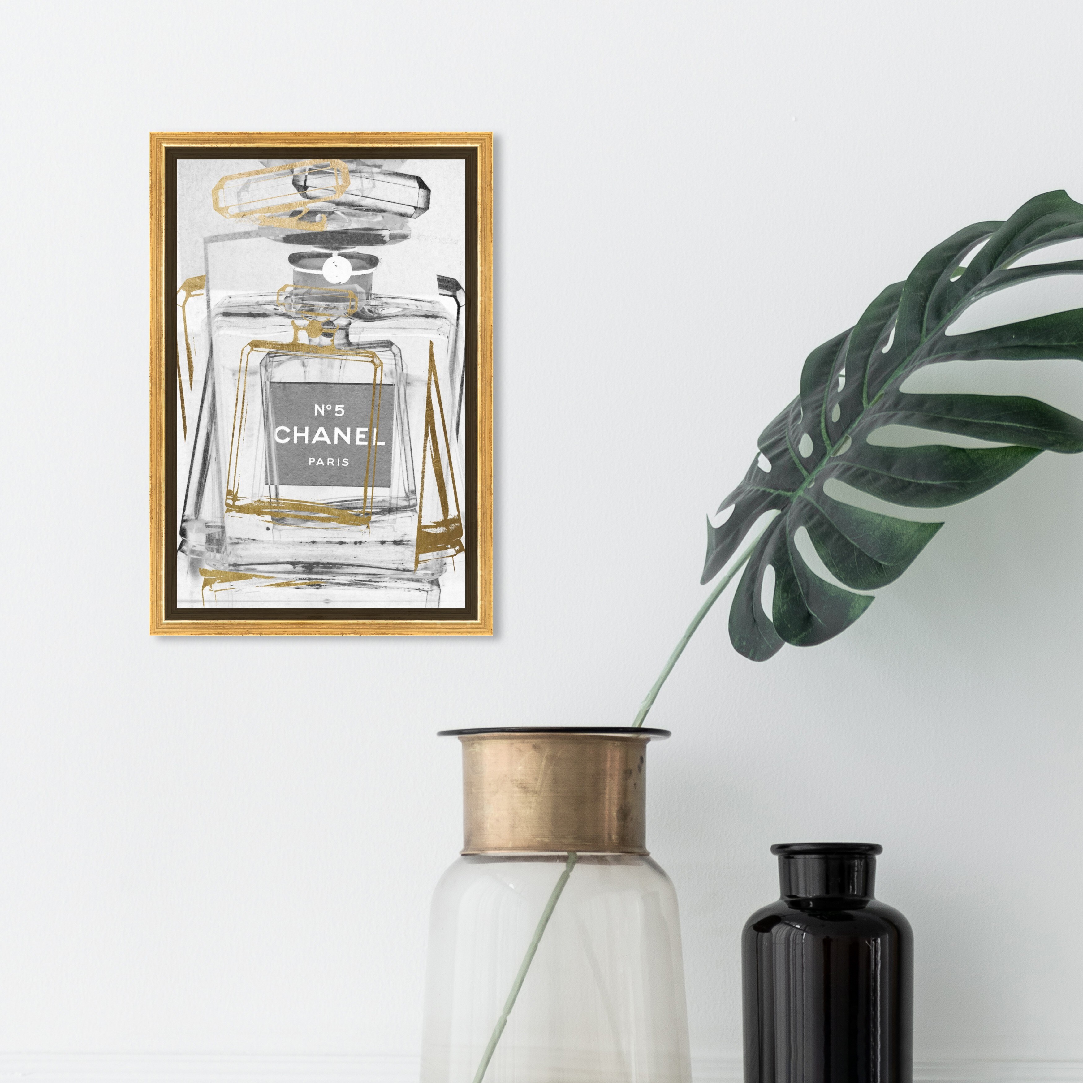 Oliver Gal 'Infinite Glam Light Gray' Fashion and Glam Wall Art Framed Canvas Print Perfumes - Gray, Gold