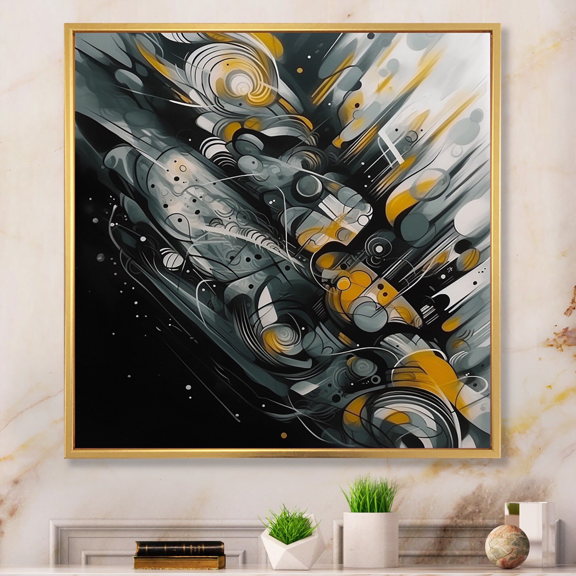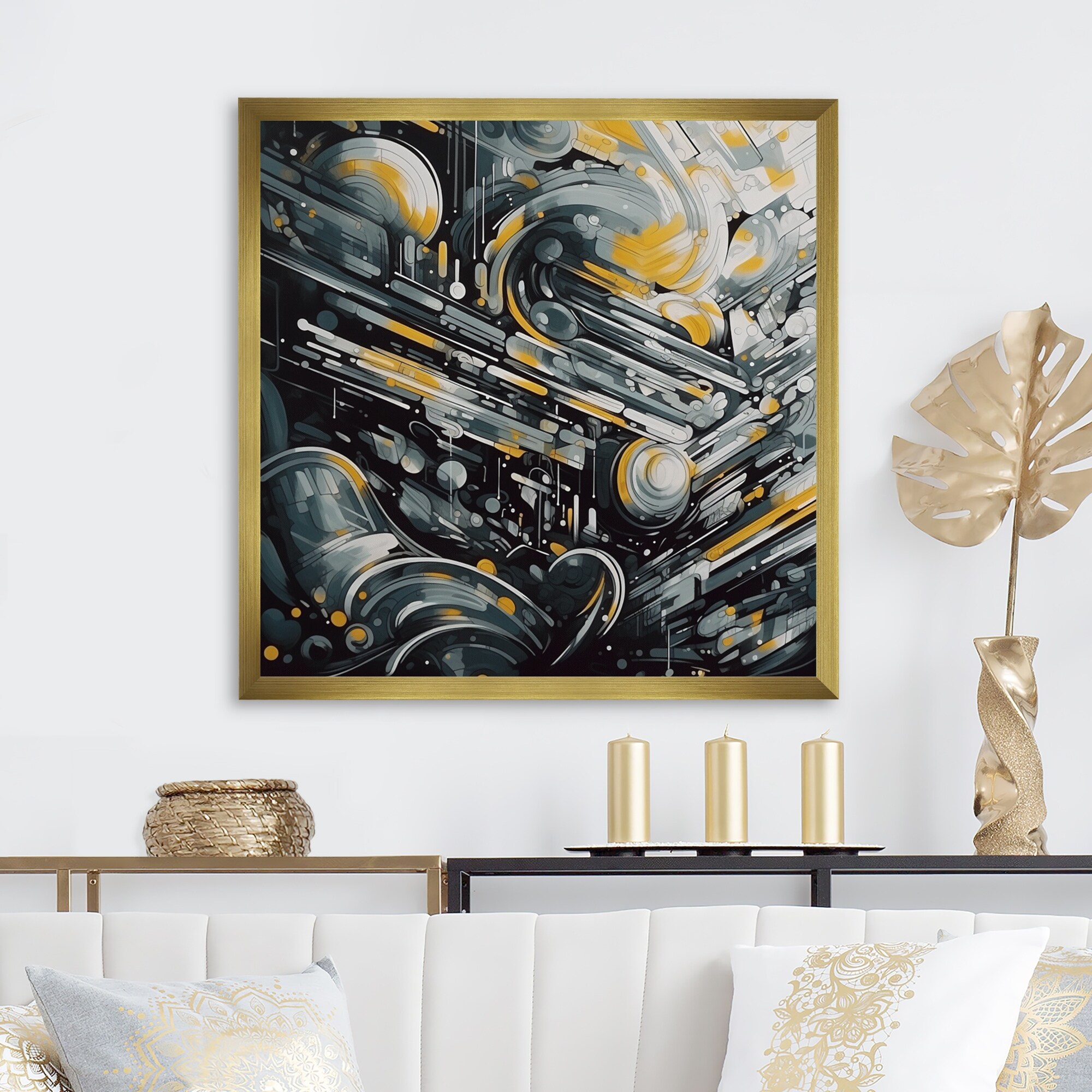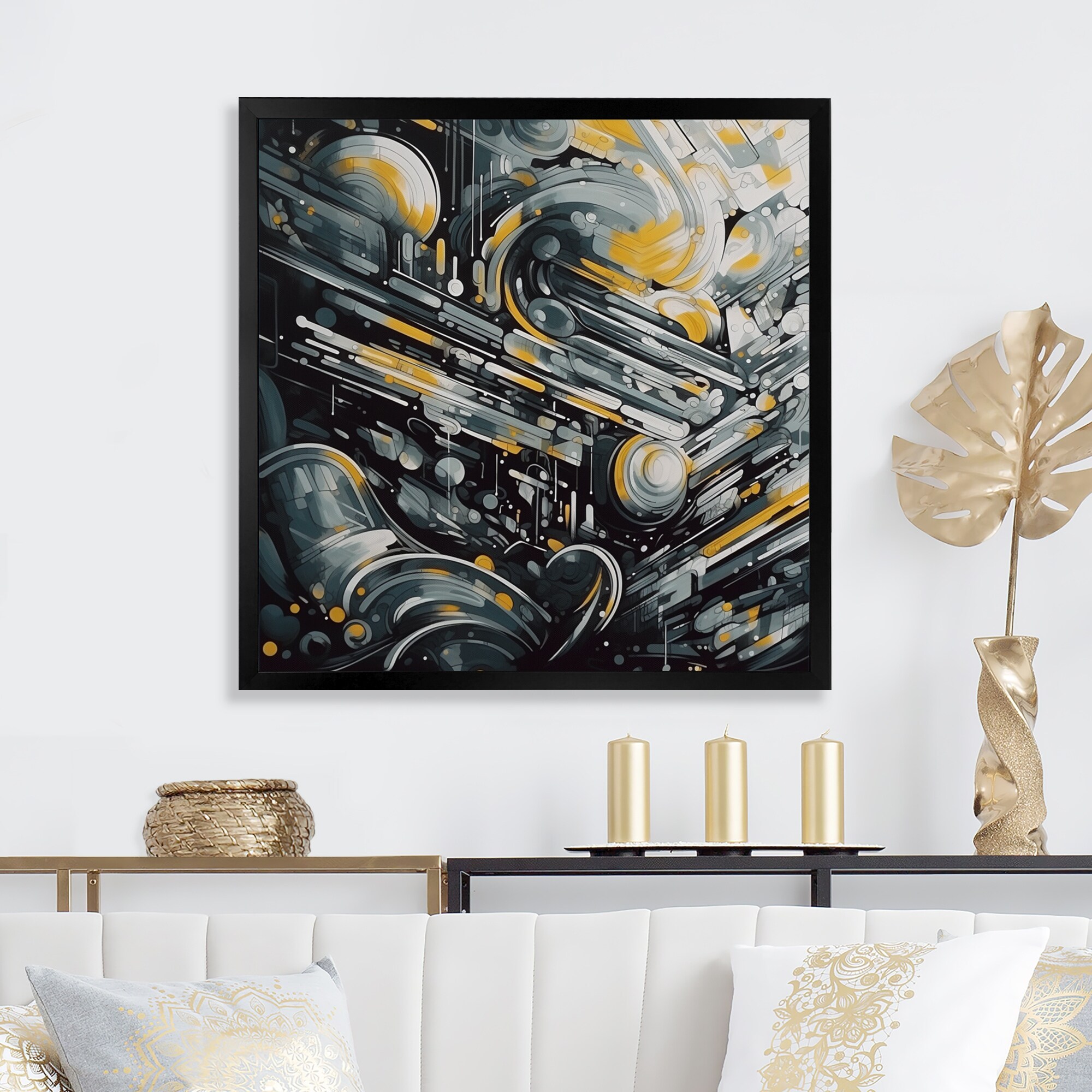 Designart "Grey And Yellow Infinite Geometry Ii" Modern Geometric Framed Canvas Art Print