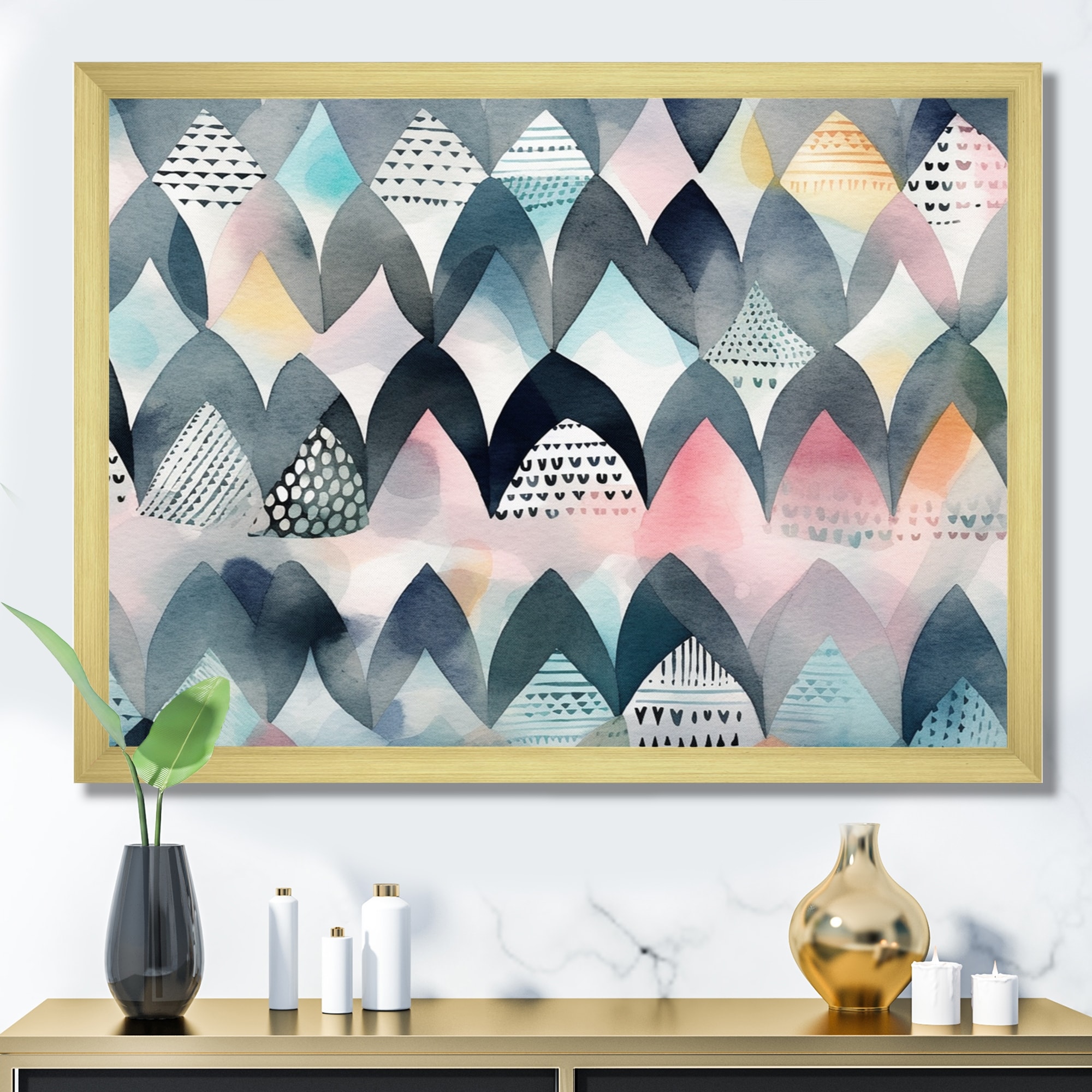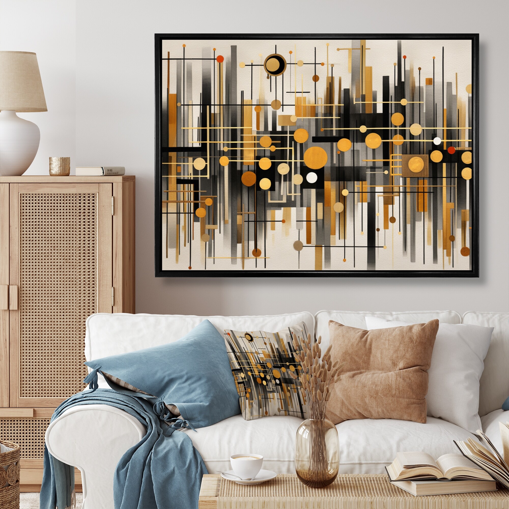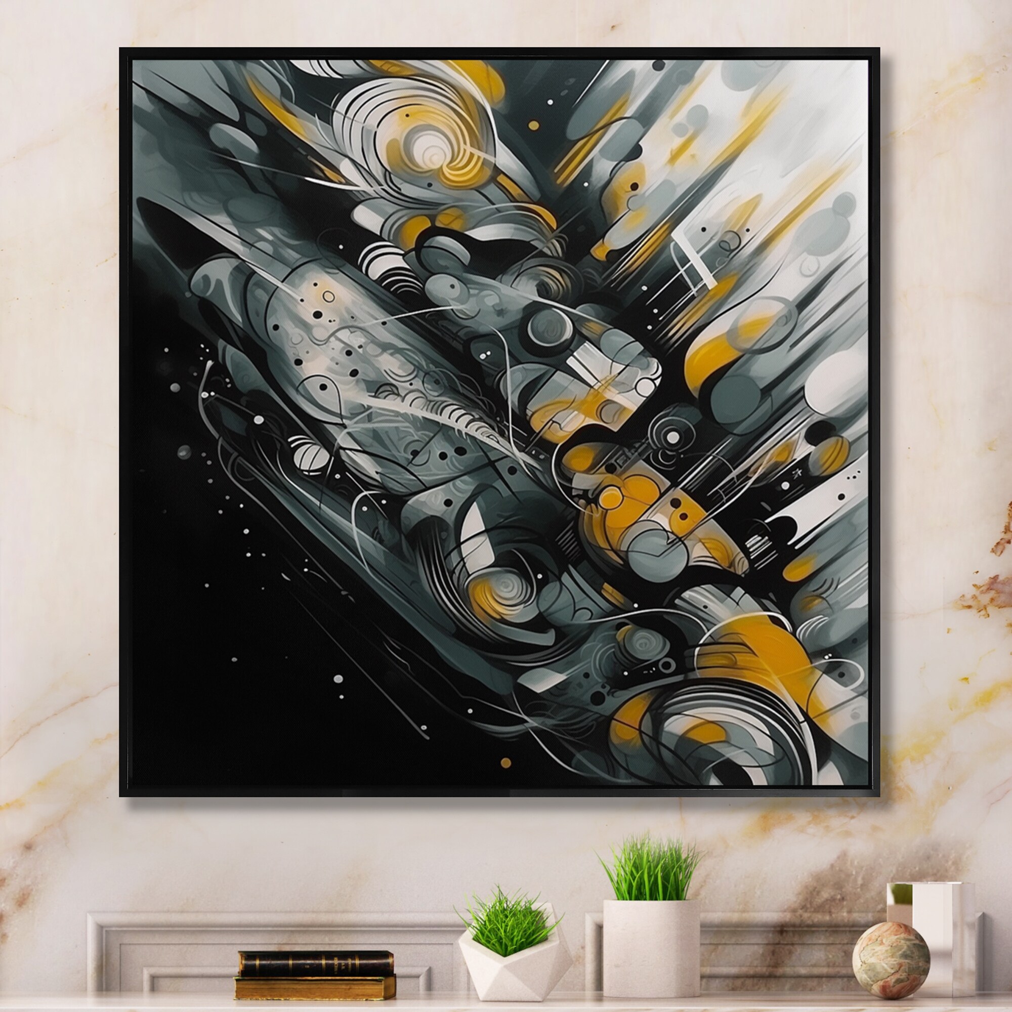 Designart "Grey And Yellow Infinite Geometry Ii" Modern Geometric Framed Canvas Art Print