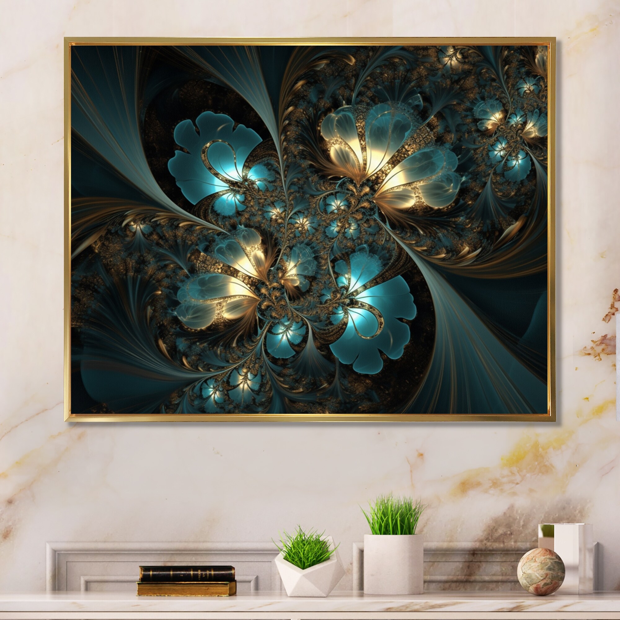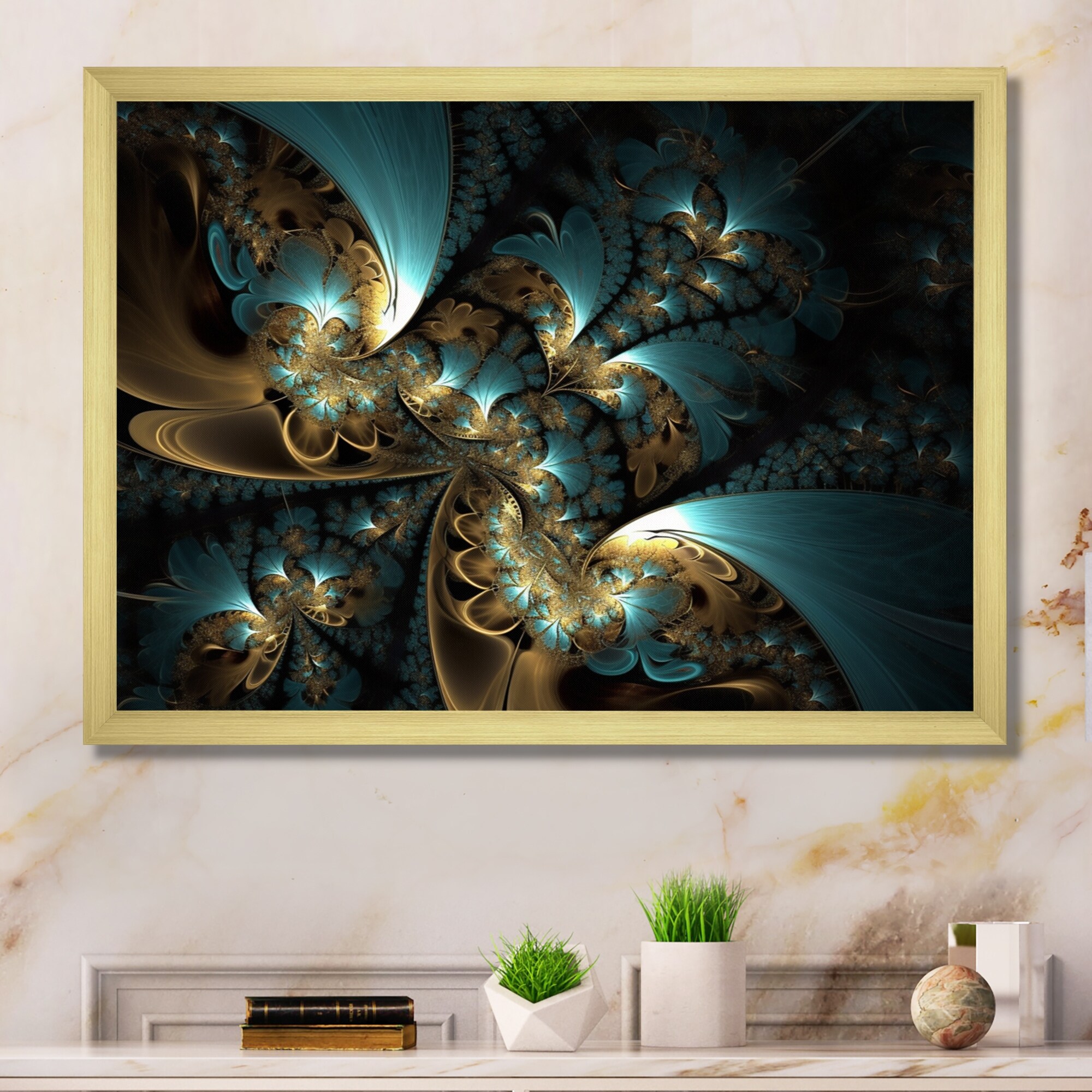Designart "Blue And Gold Melodies of Infinite Order Ii" Abstract Fractal Framed Wall Decor