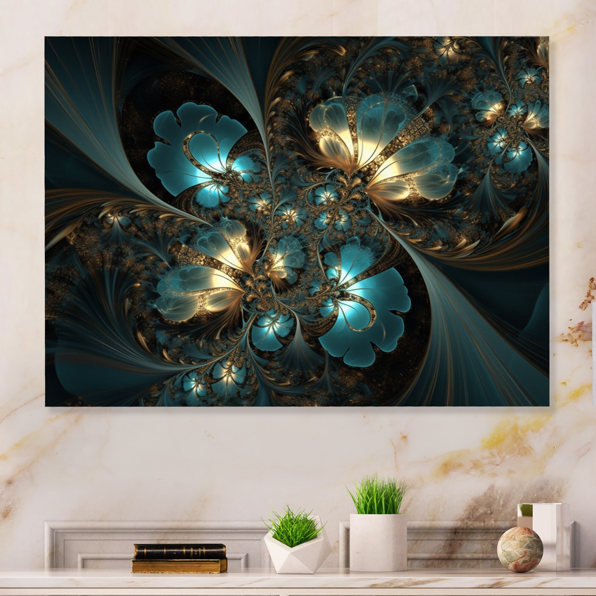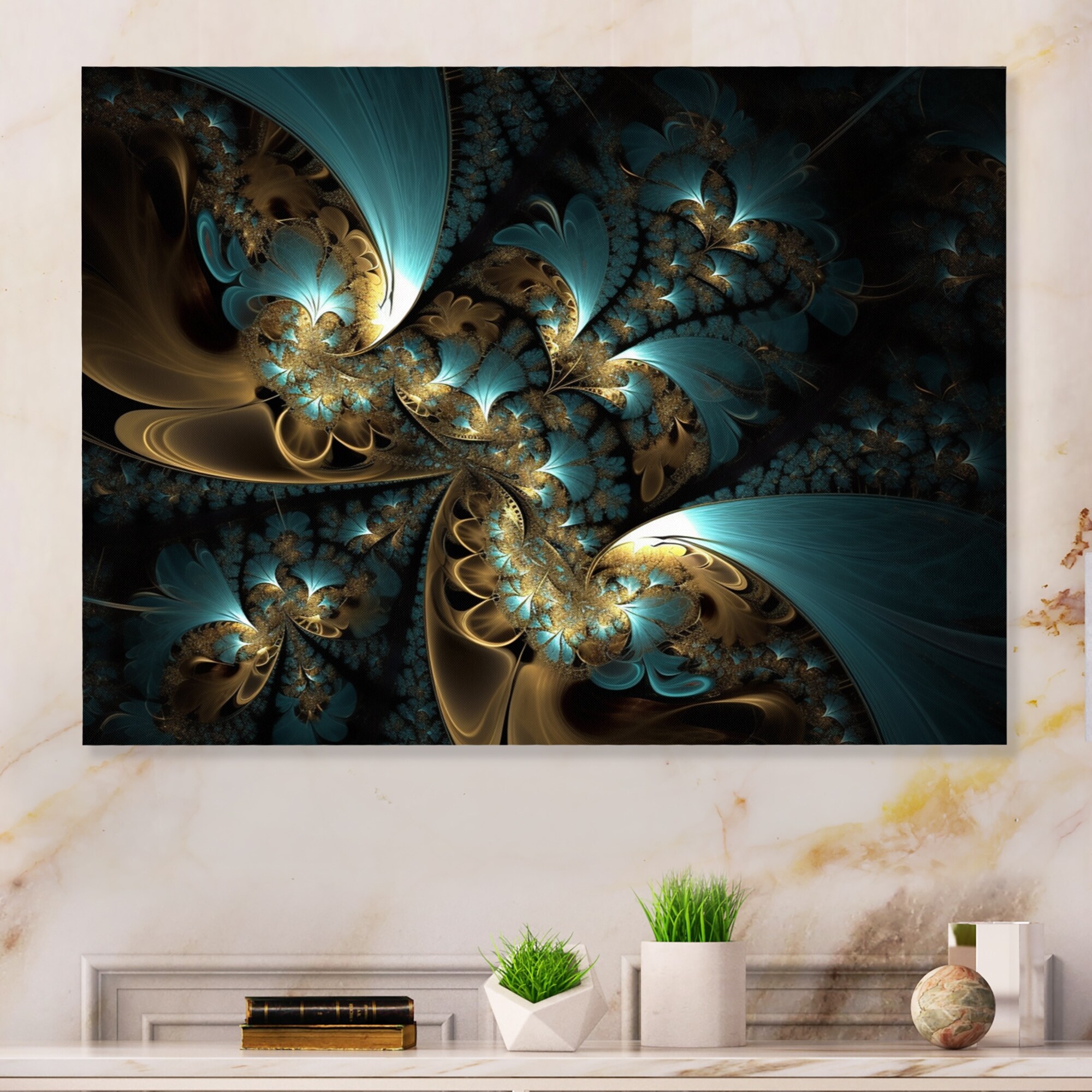Designart "Blue And Gold Melodies of Infinite Order II" Abstract Fractal Metal Wall Art
