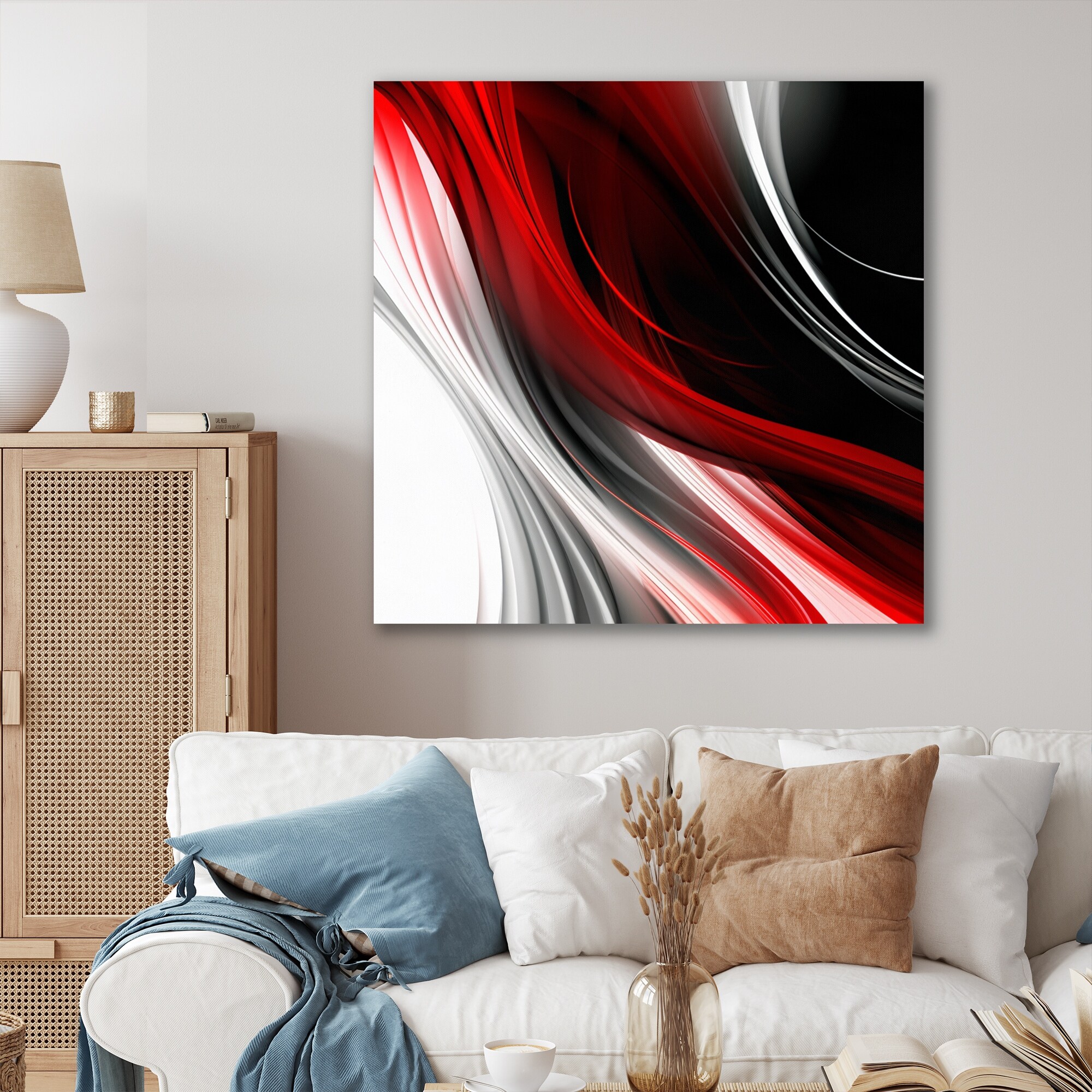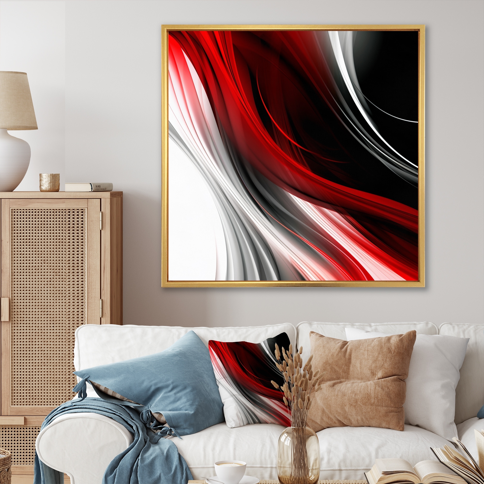 Designart "Red Black Infinite Ripples Ii" Modern Waves Framed Canvas Print