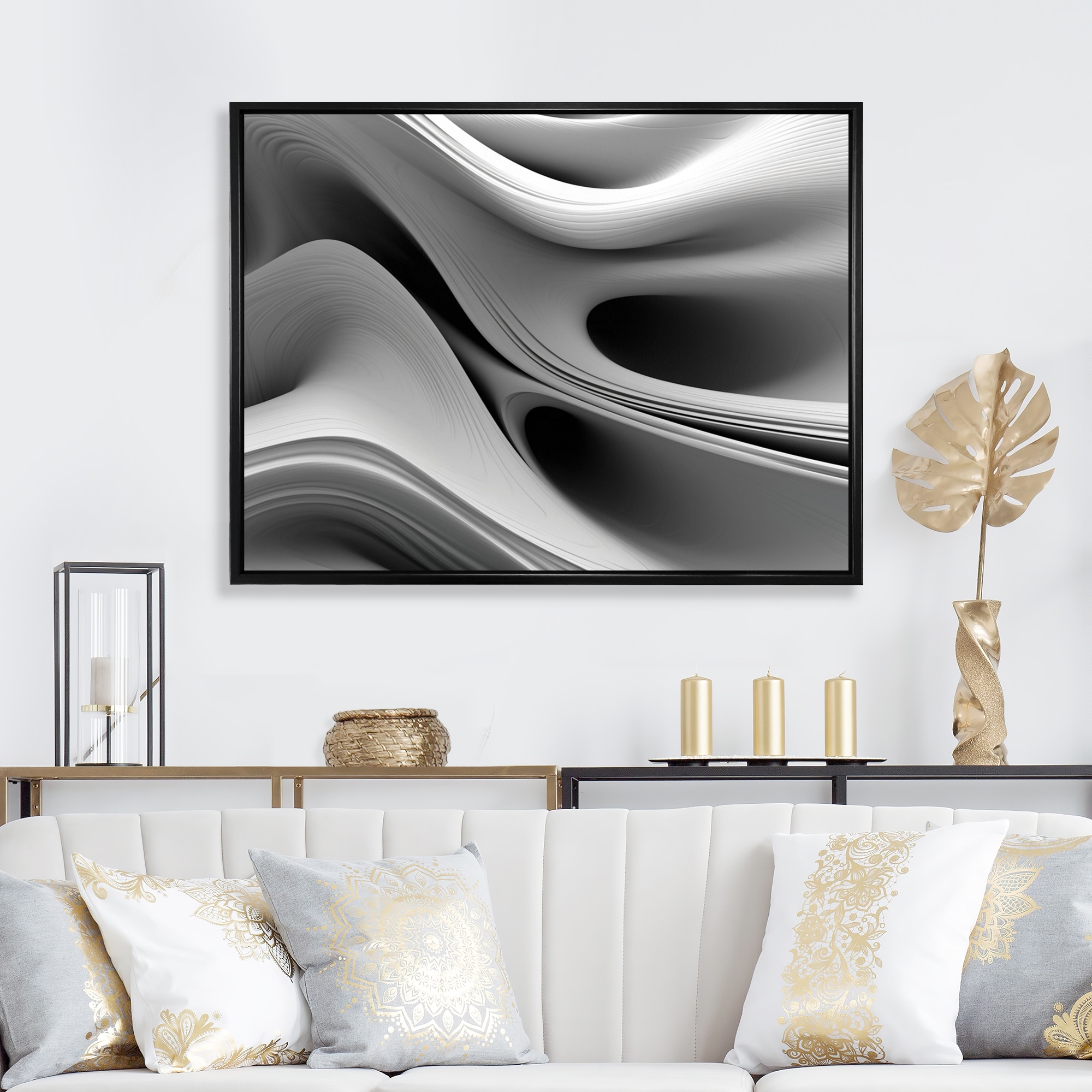 Designart "White Black Infinite Ripples" Modern Waves Framed Wall Art for Living Room