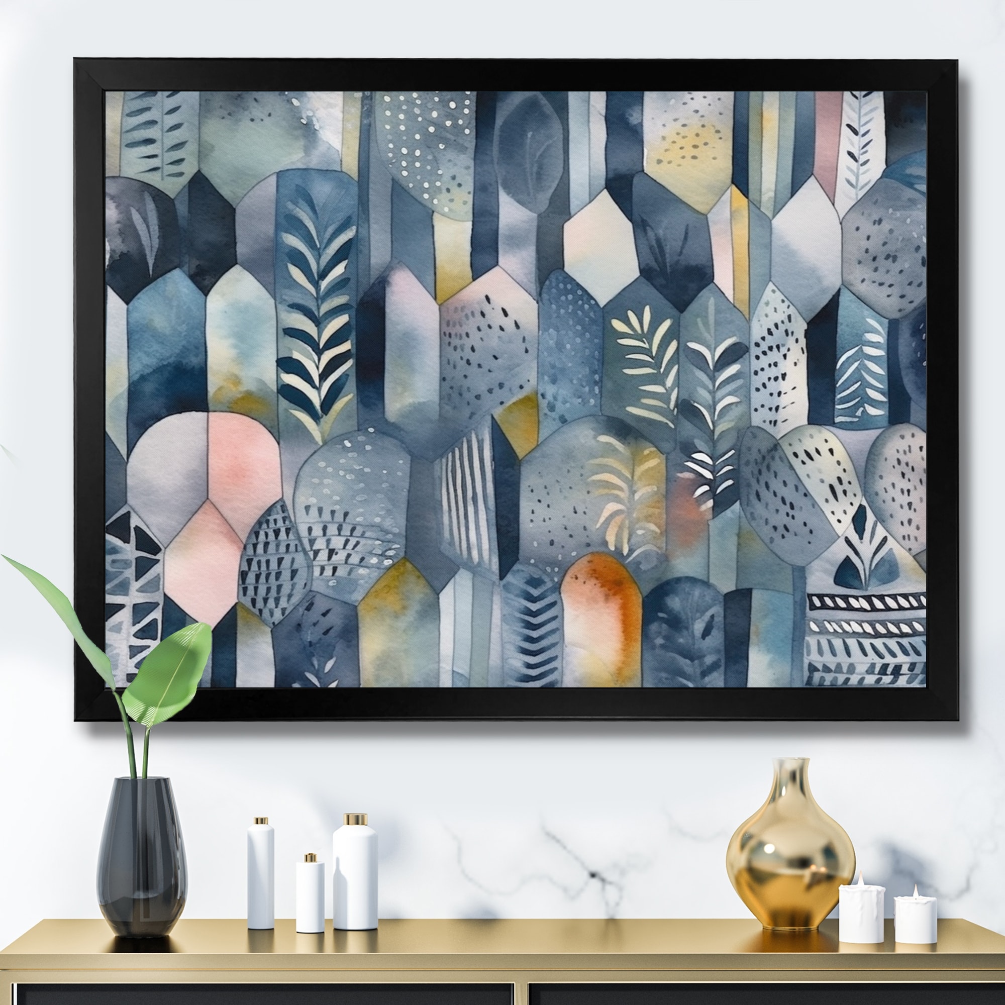 Designart "Blue And White Infinite Geometry I" Modern Geometric Framed Wall Decor