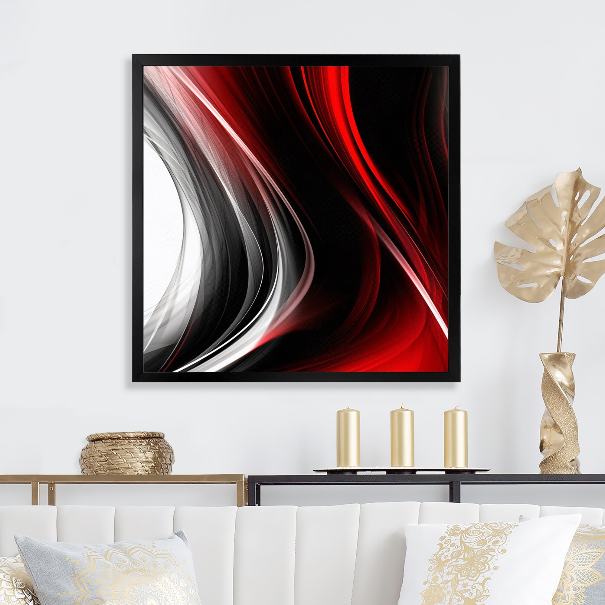 Designart "Red Black Infinite Ripples I" Modern Waves Framed Wall Art Prints