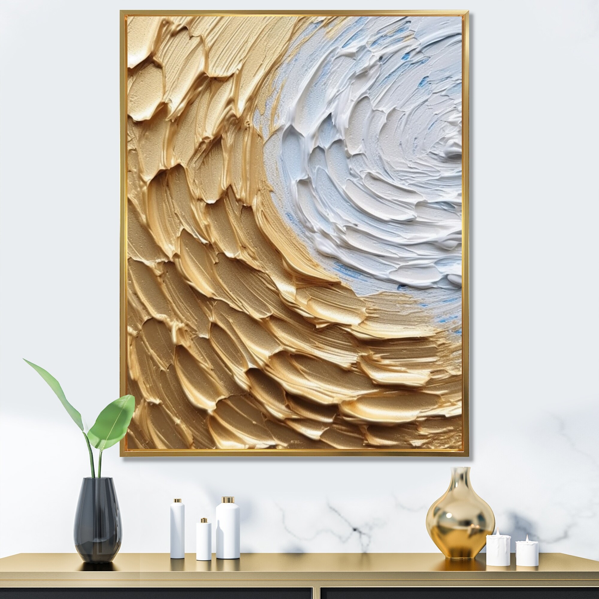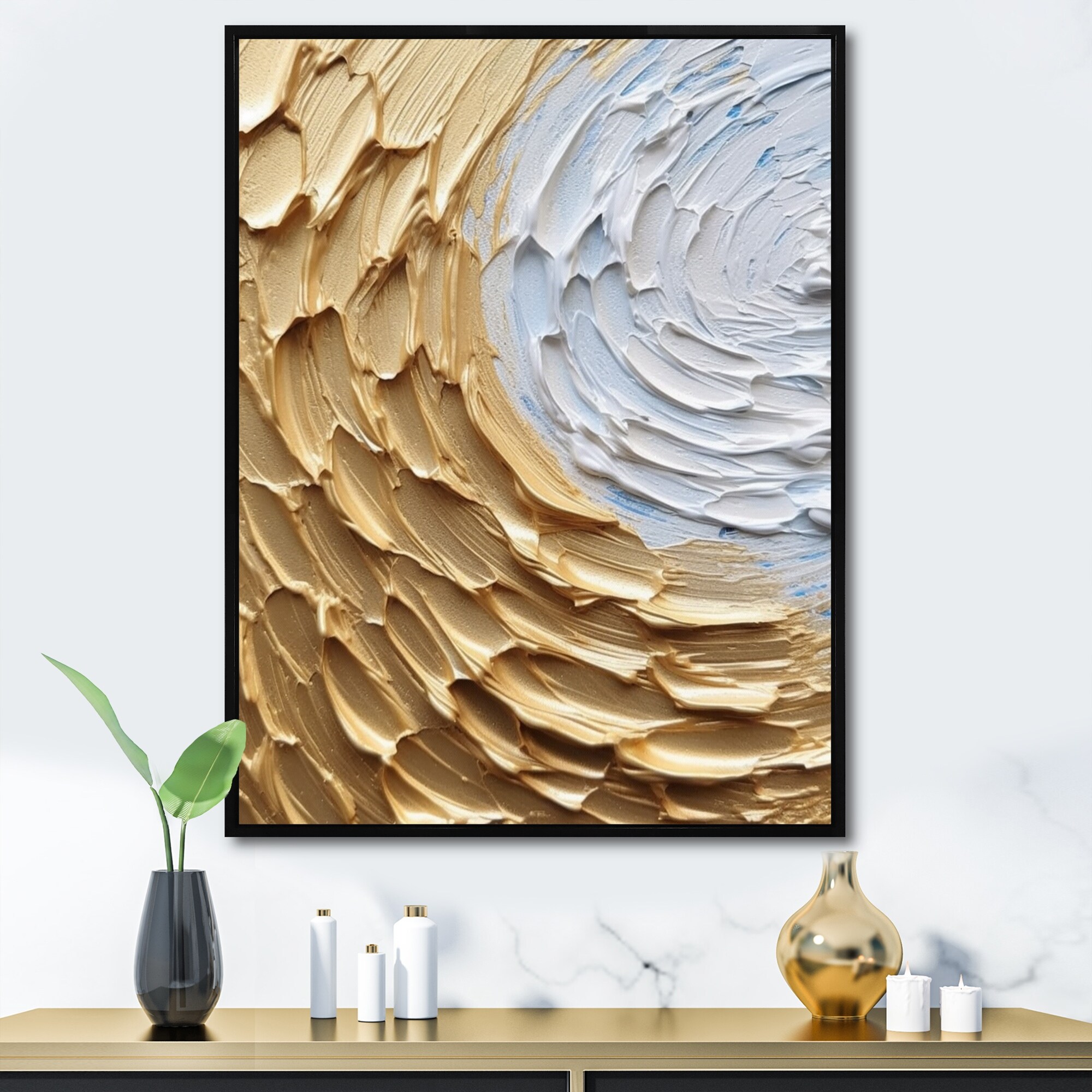 Designart "Gold Cream Infinite Swirls III" Abstract Spirals Framed Wall Decor