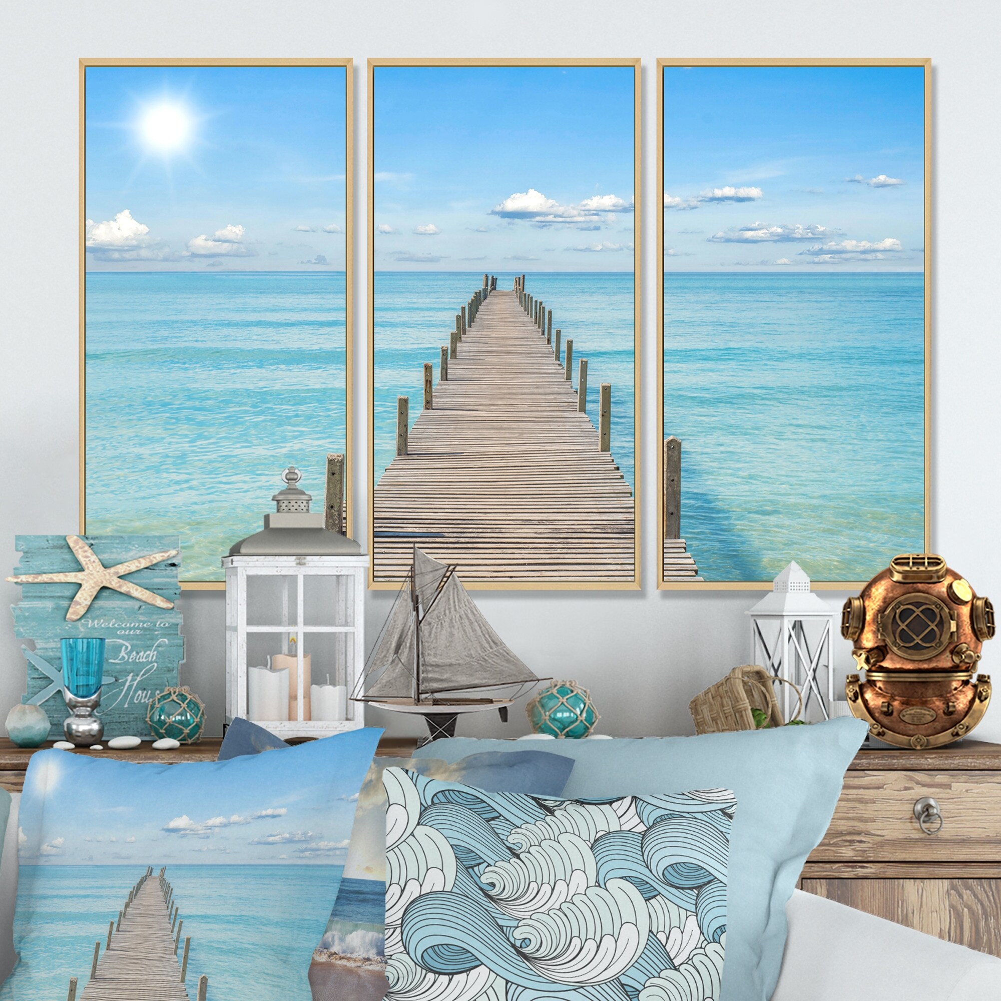 Designart "Pier Infinite to the Sea" Sea & Shore Framed Art Prints Set of 3 - 4 Colors of Frames