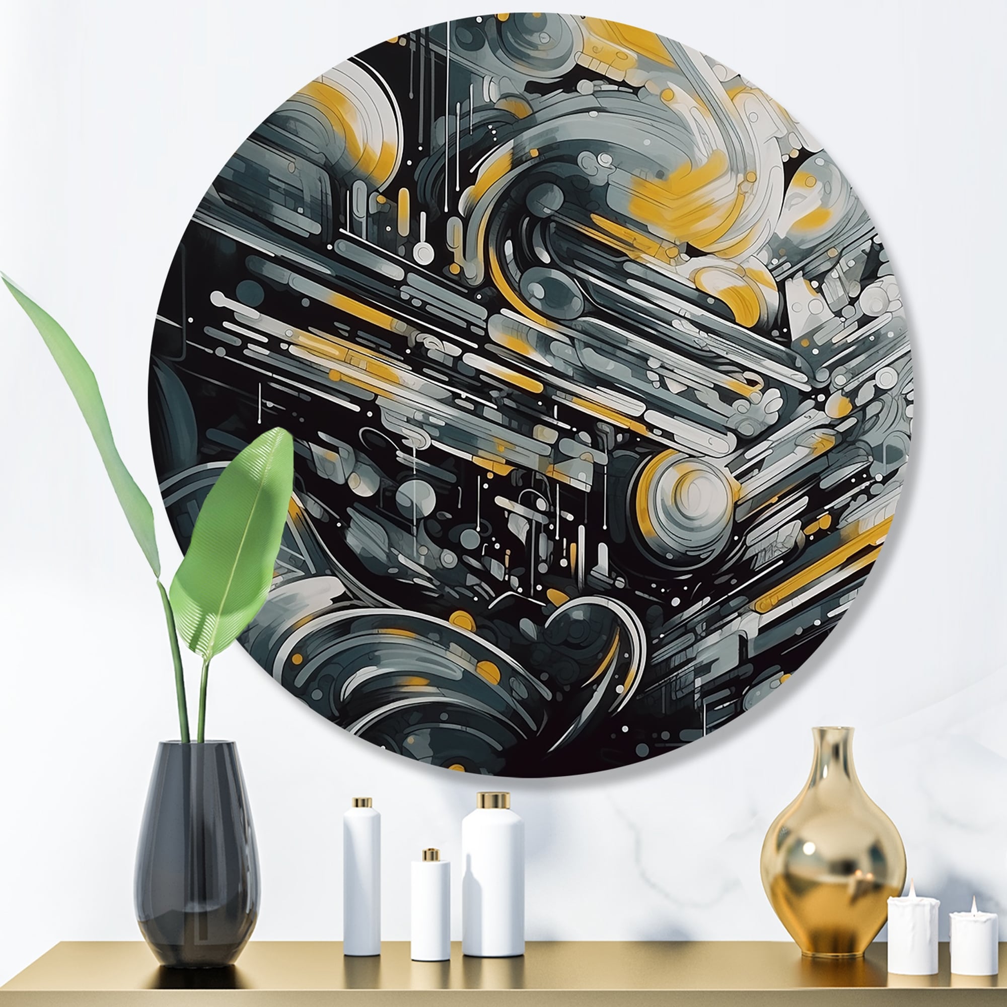 Designart "Grey And Yellow Infinite Geometry I" Modern Geometric Metal Round Wall Art
