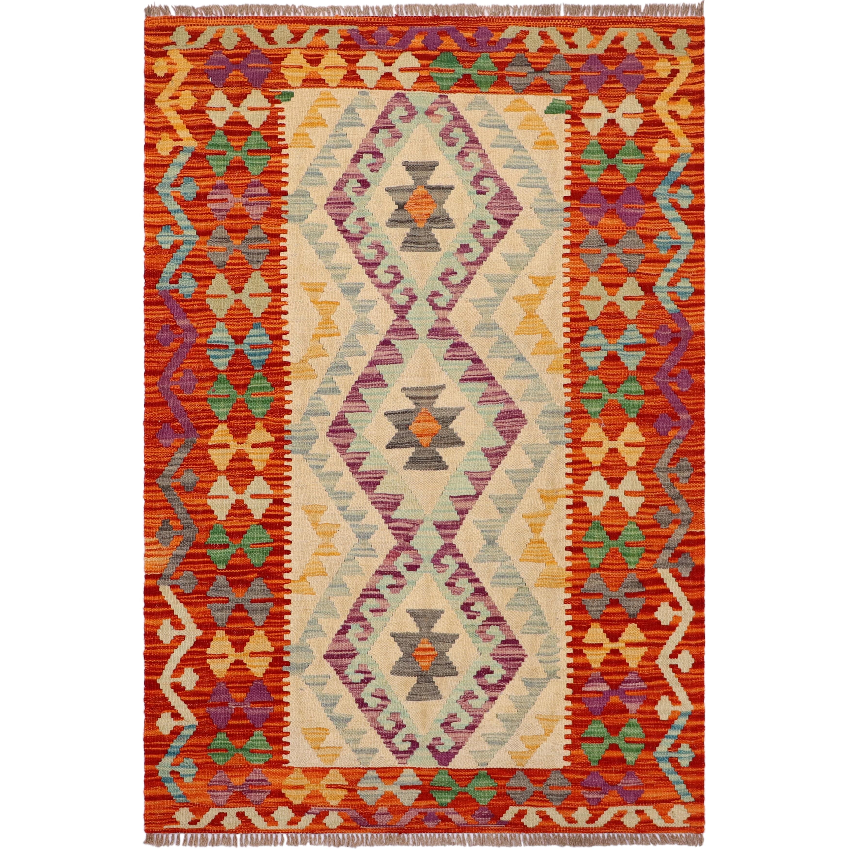Turkish Eclectic Katie Hand-Woven Kilim Rug - 3'2'' x 4'11'' - 3'2'' x 4'11''