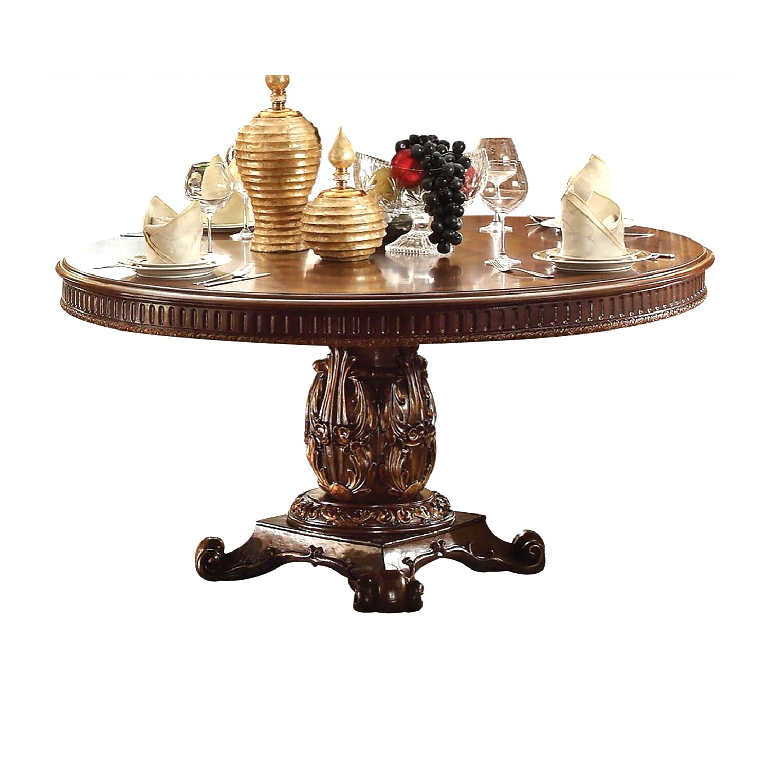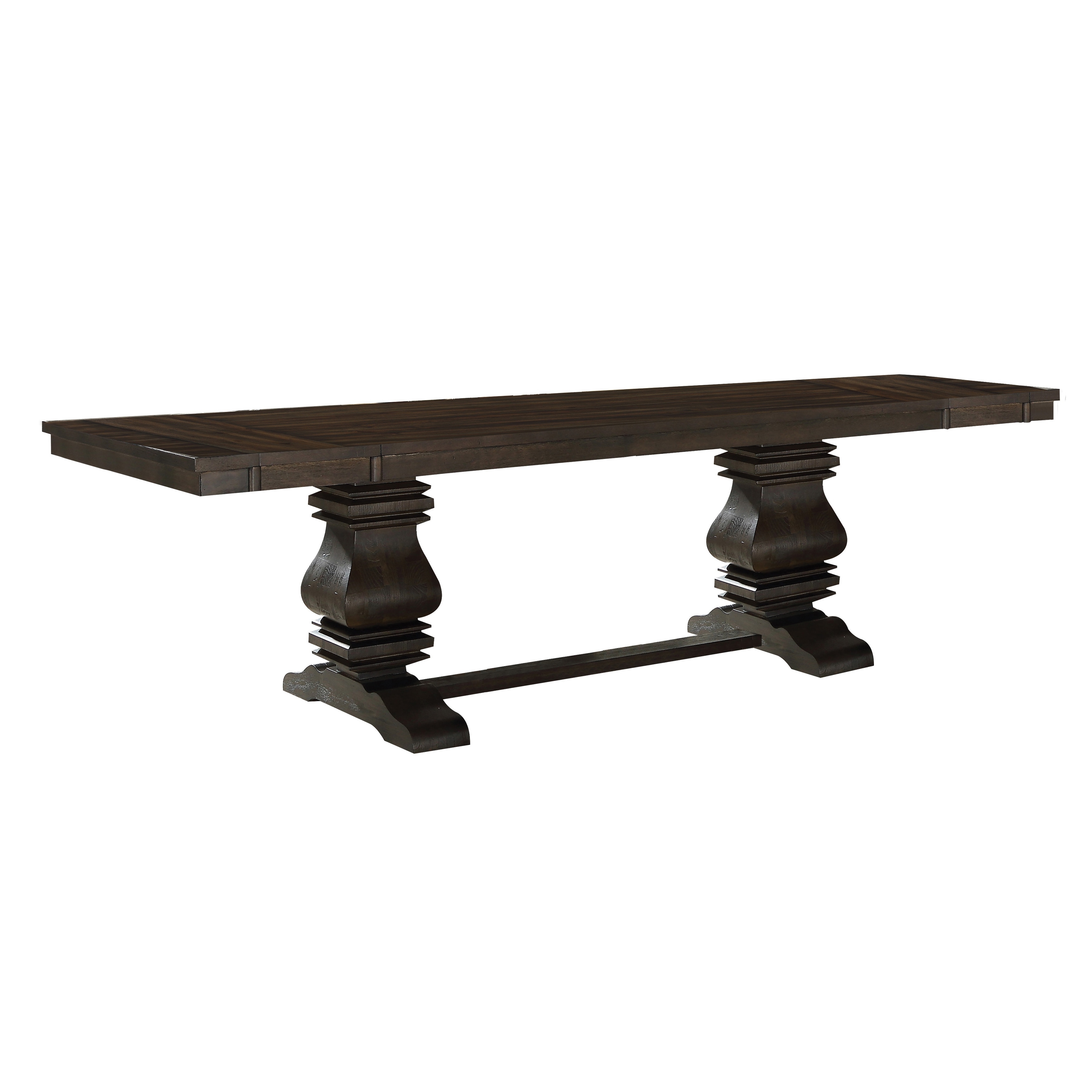 Transitional Dining Table with Double Pedestal Base and Removable Leaf,Brown