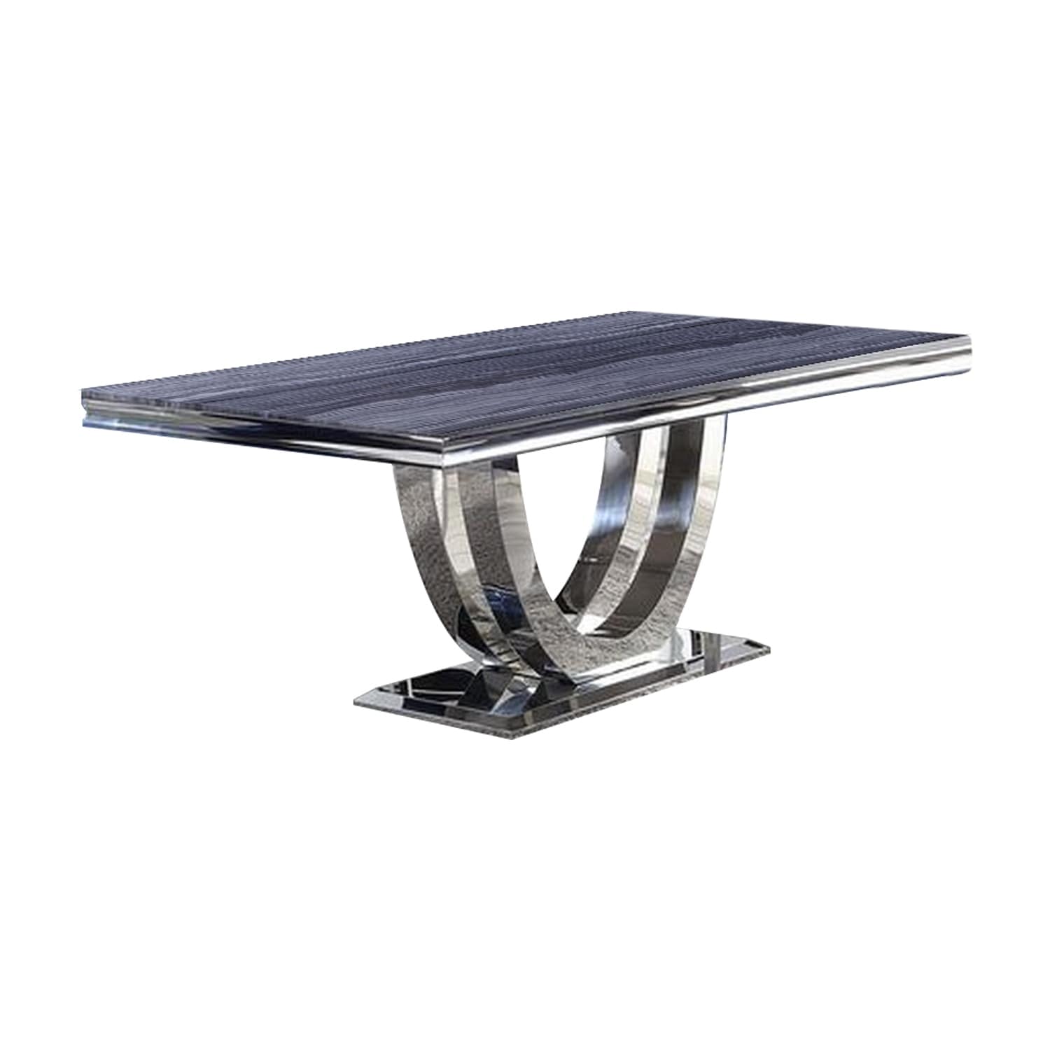 Dining Table with Faux Marble Top and Open Pedestal Base, Chrome