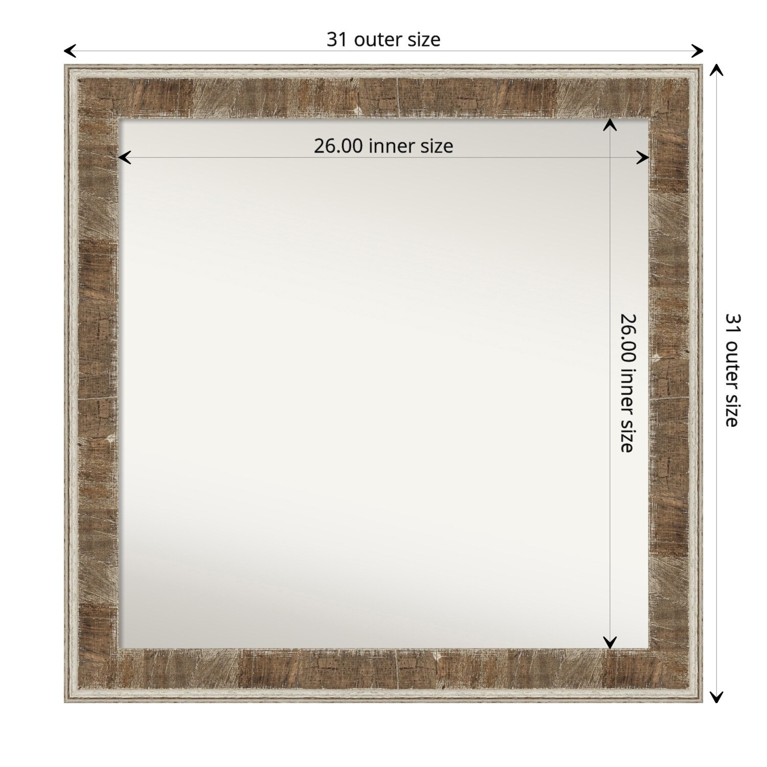 Non-Beveled Wood Wall Mirror - Alexandria Rustic Brown Frame