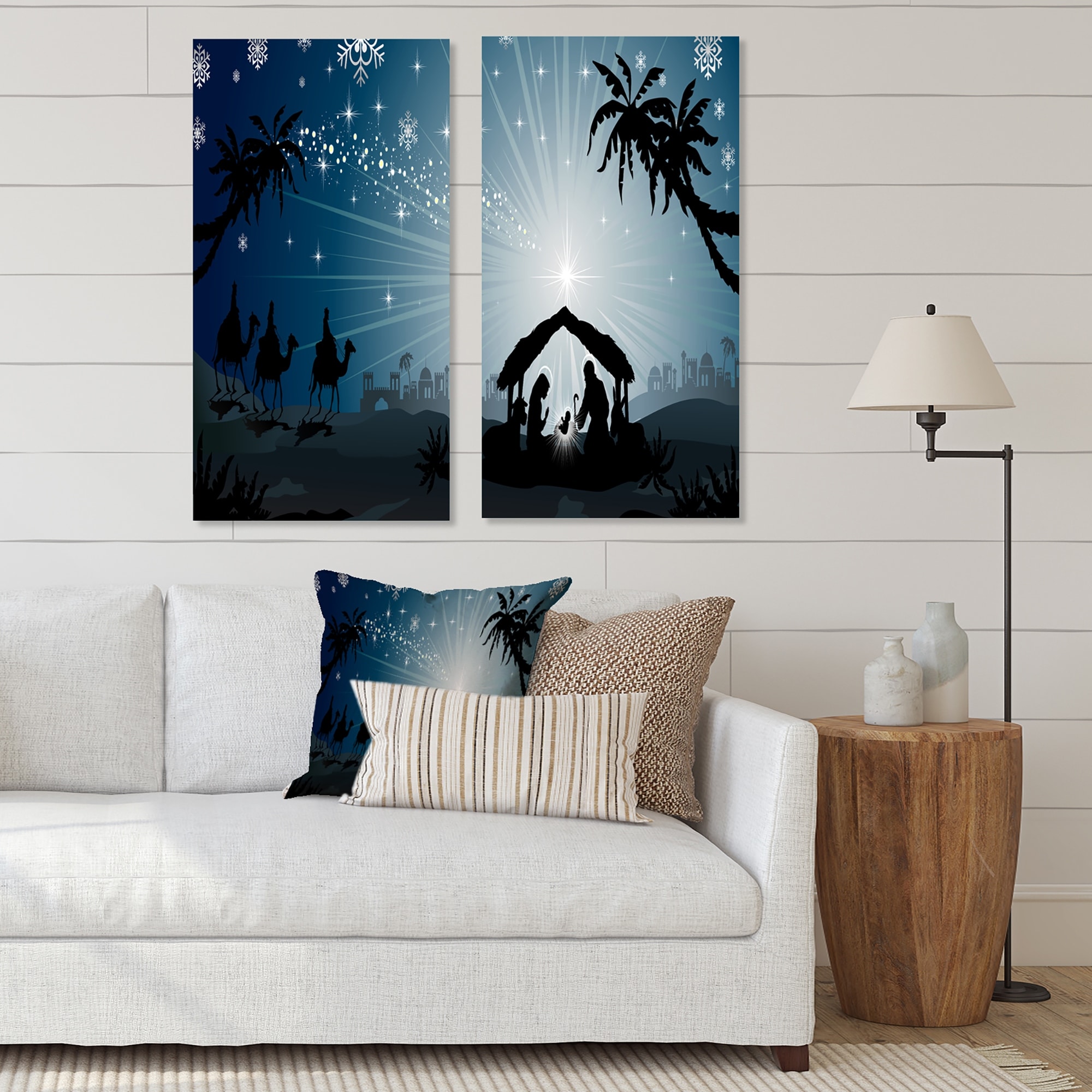 Designart "Christmas Nativity Scene with Three Wise Men" Holiday Canvas Wall Art Print 2 Piece Set
