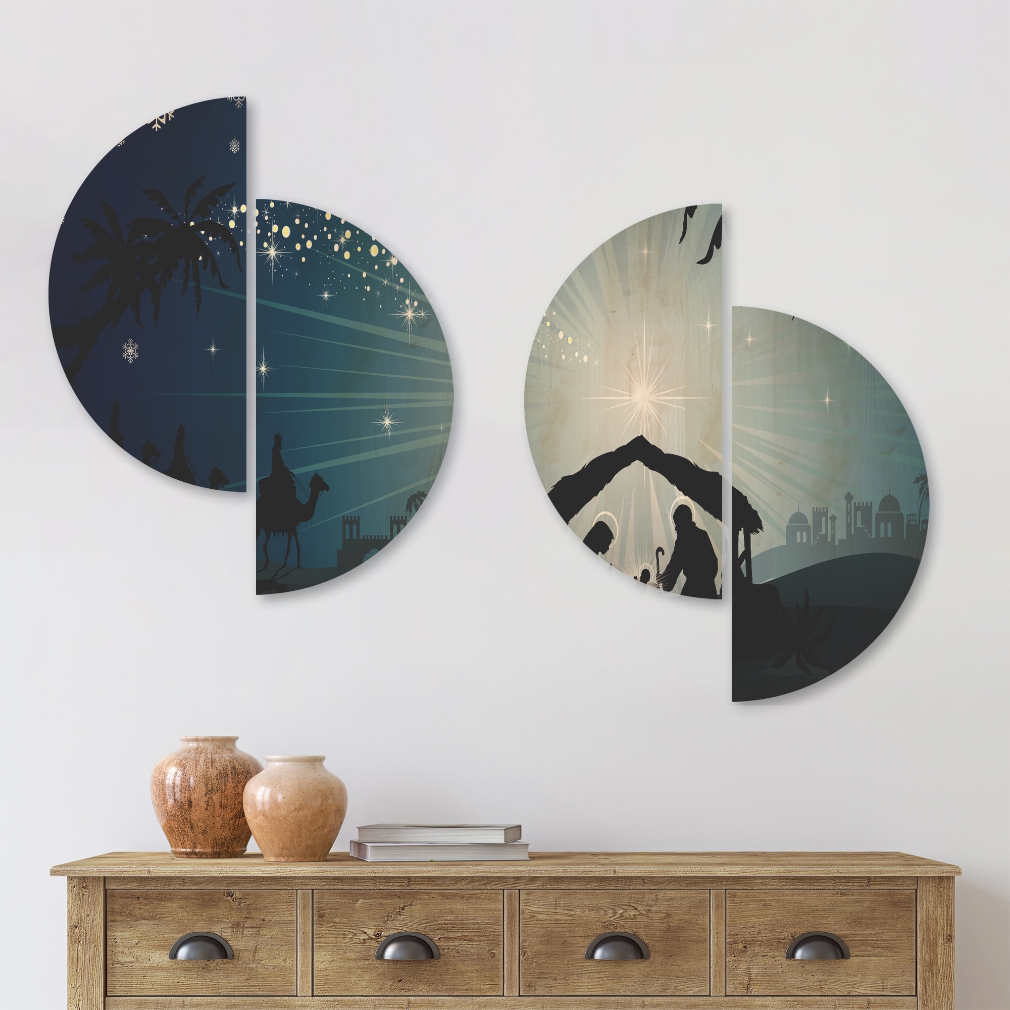 Designart 'Christmas Nativity Scene with Three Wise Men' Spiritual Wood Wall Art Set of 4 Half Circles
