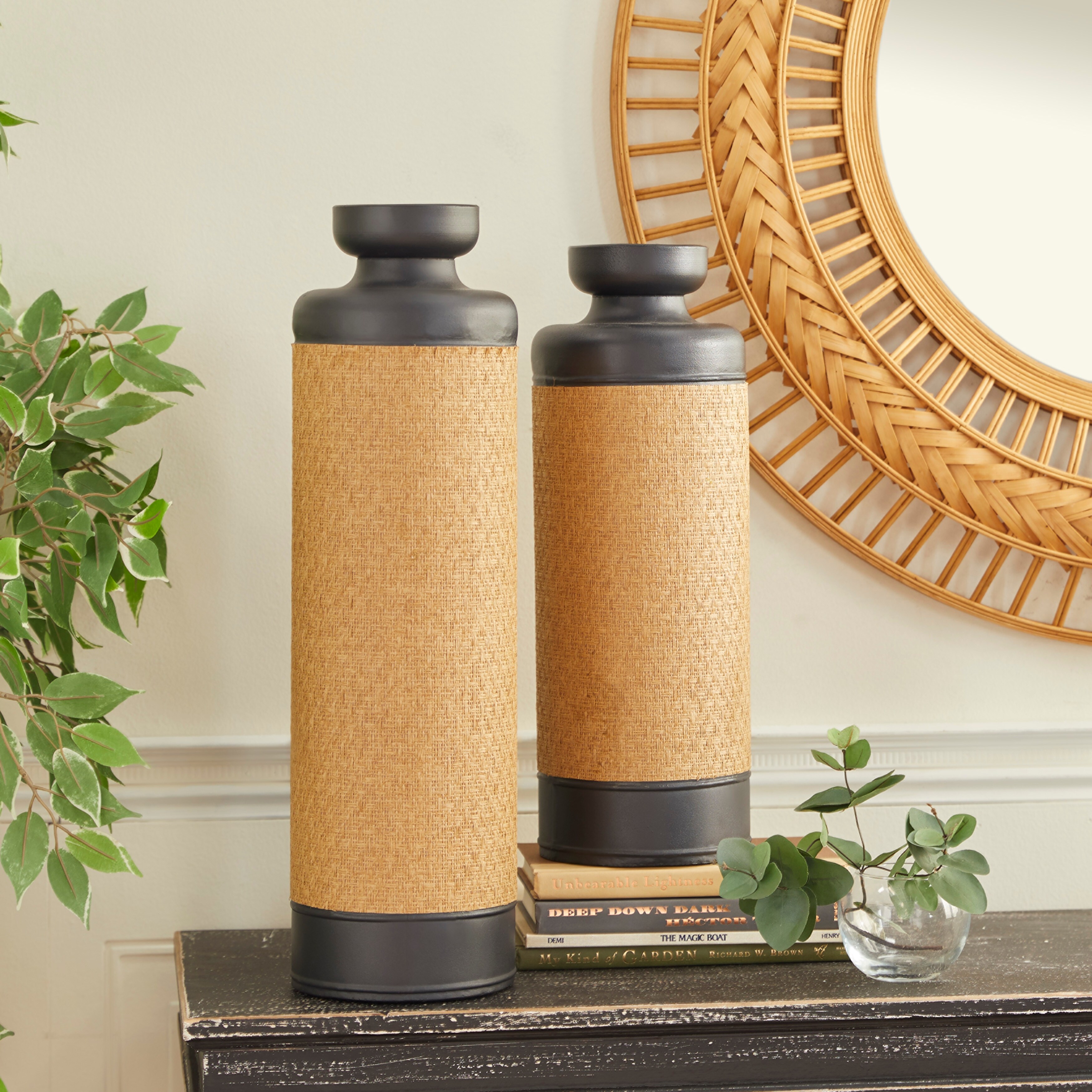 Brown Metal Contemporary Vase (Set of 2) - 6 x 7 x 22