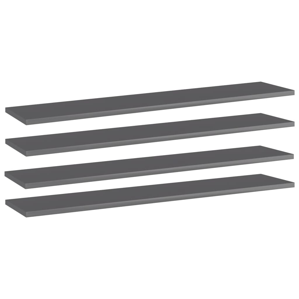 Bookshelf Boards 4 pcs High Gloss Gray 39.4"x7.9"x0.6" Chipboard