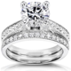 Kobelli 2.9 Carats Moissanite & Natural Diamond 14k Solid Gold Comfort Fit French Pavé Lyon 2pc Bridal Set