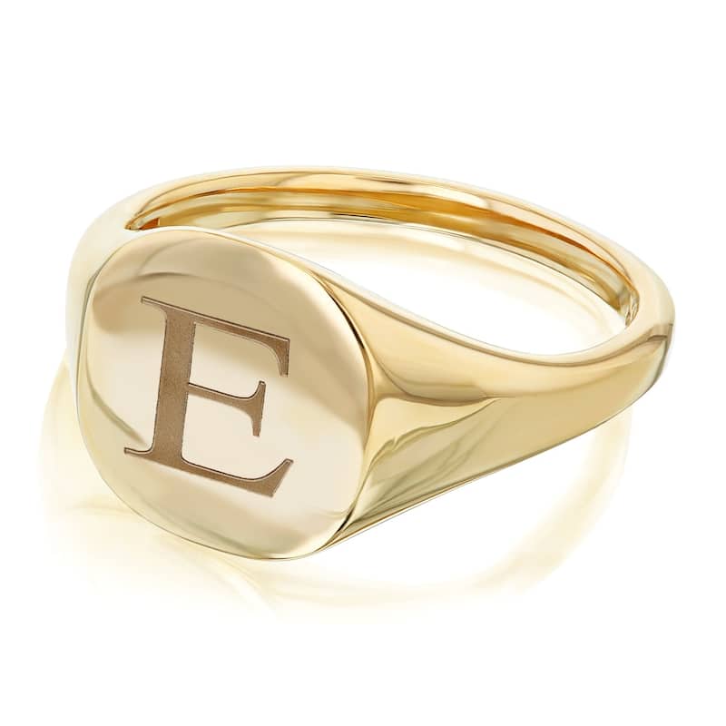 Annello by Kobelli 14k Yellow Gold Personalized Signet Initials Cushion Ring - Script