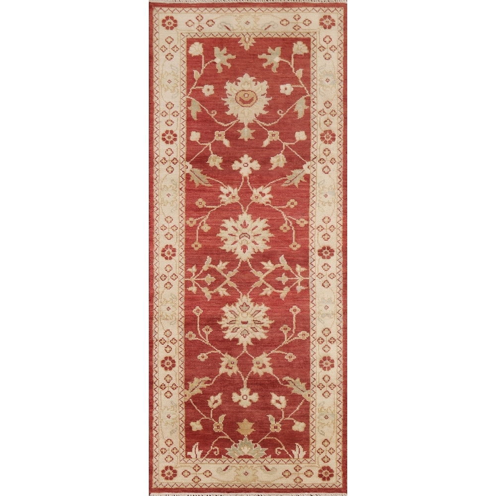 Red Chobi Peshawar Oriental Runner Rug Handmade Wool Carpet - 2'3" x 6'8"