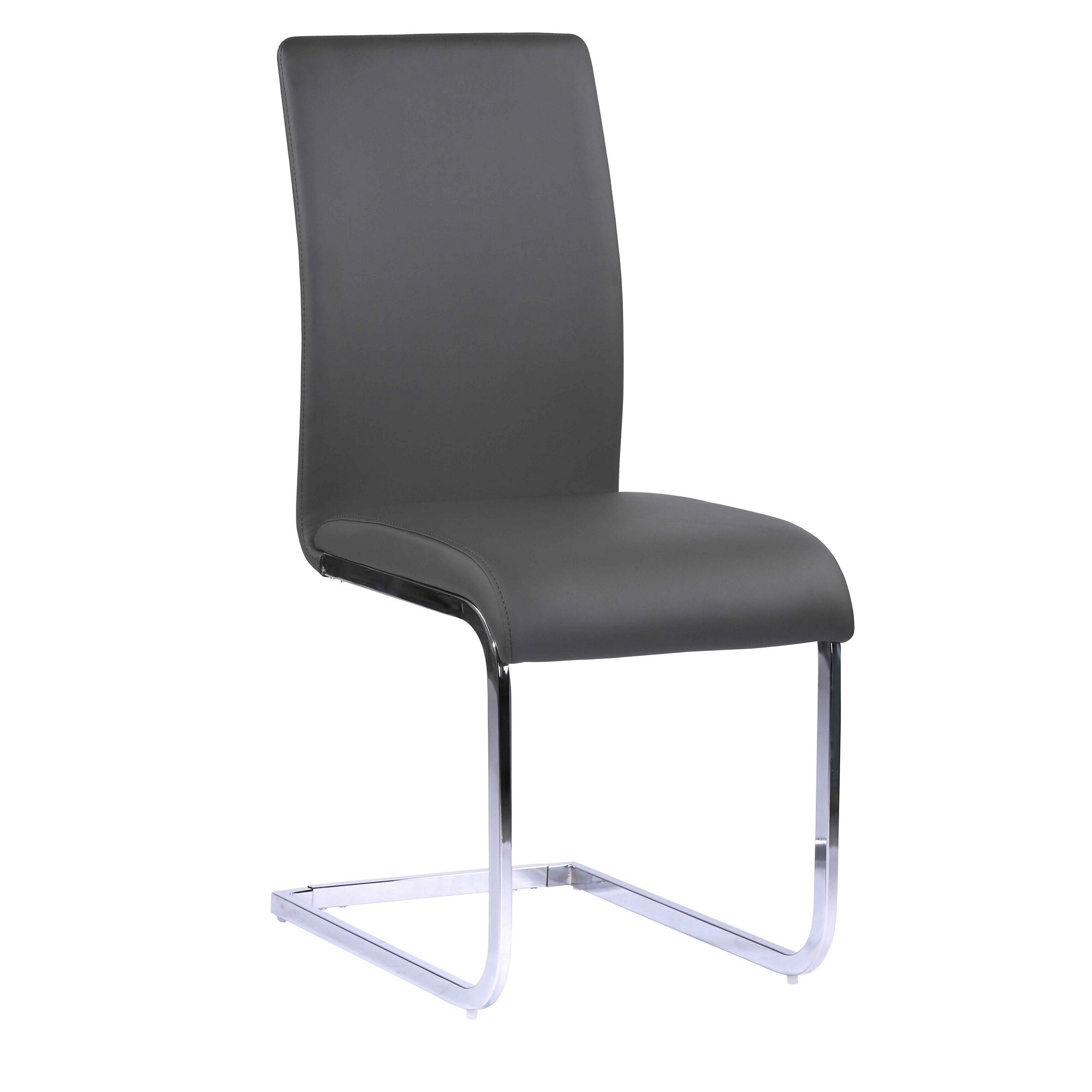 23 Inch Modern Dining Chair, Gray Leather, Metal Frame,Set of 2,Gray,Silver