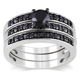 Miadora Sterling Silver 1ct TDW Black Diamond Stackable 3-piece Engagement Bridal Ring Set