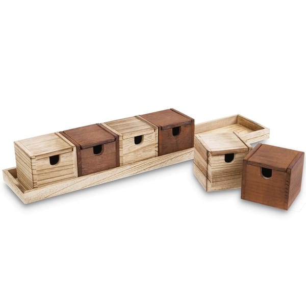 Wooden Multipurpose Desktop Organizer Box with Lid, 6 Boxes with a Tray - 20"W x 4"D x 3 3/4"H