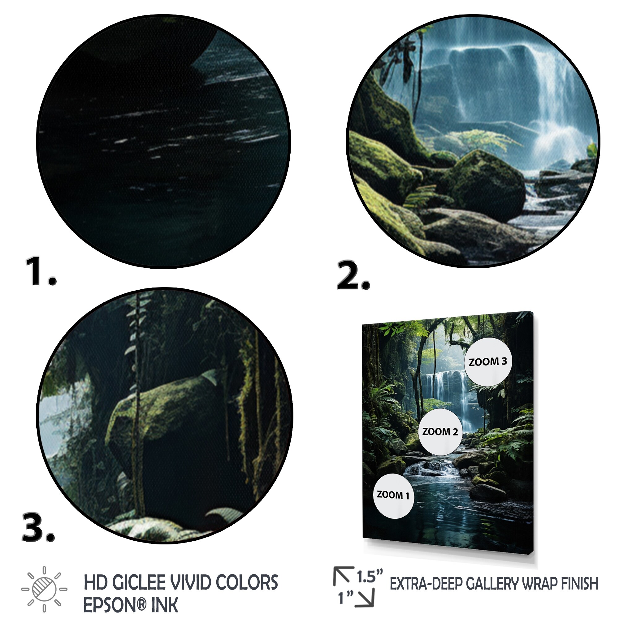 Designart "Waterfall Hidden Oasis I" Waterfall Framed Canvas Wall Art