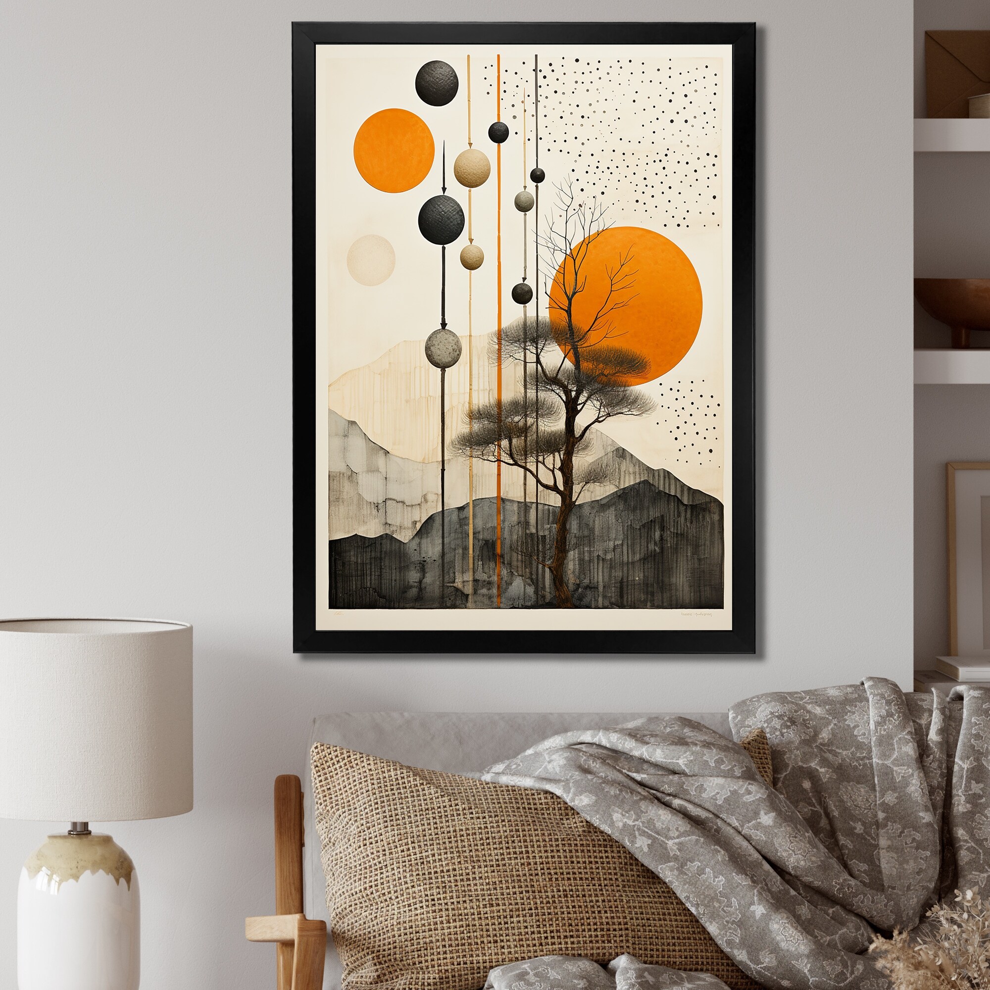 Designart "Orange Beige Mid Century Minimalist Oasis" Abstract Still Lifes Framed Wall Art Living Room