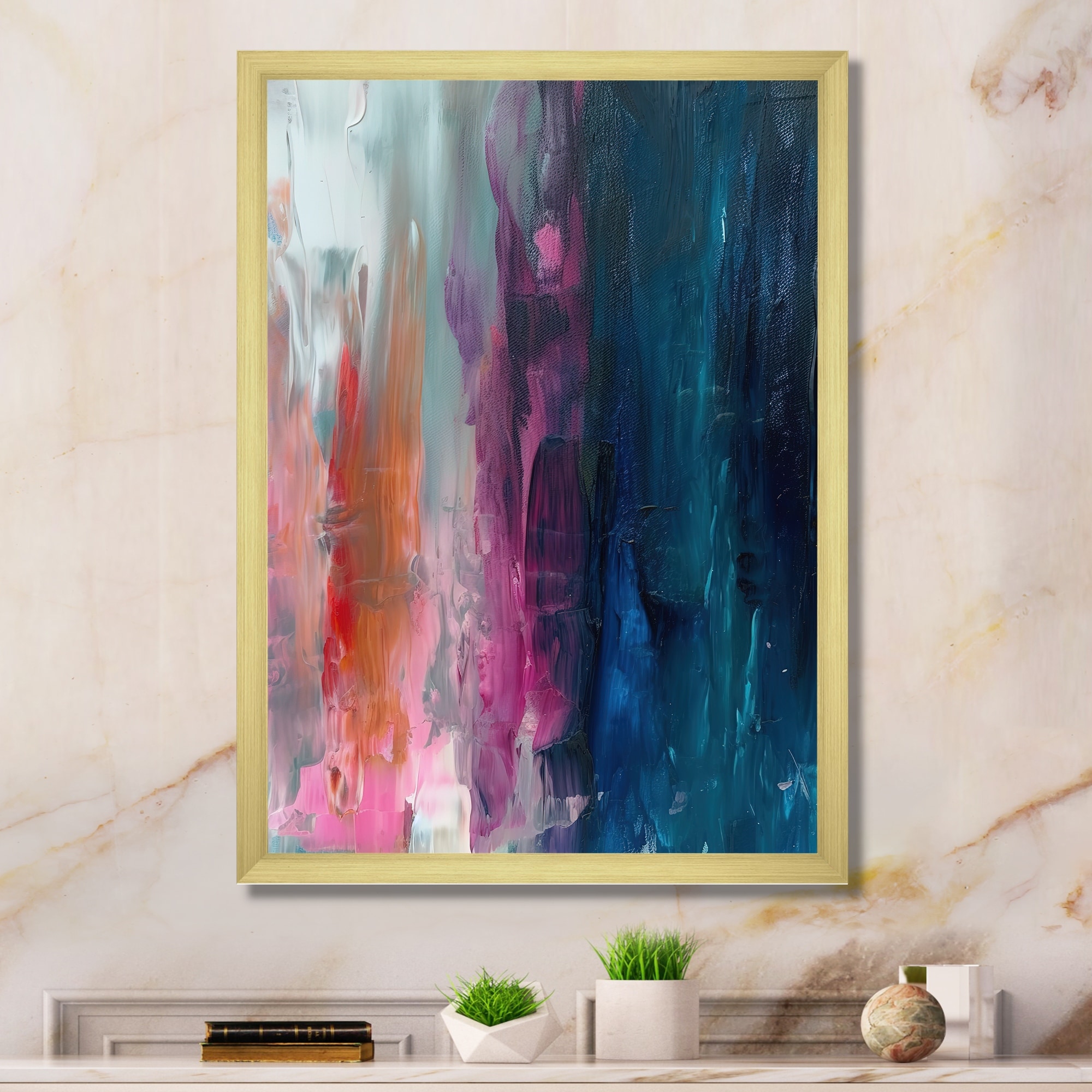 Designart "Oasis In Blue And Pink I" Abstract Painting Framed Canvas Wall Art