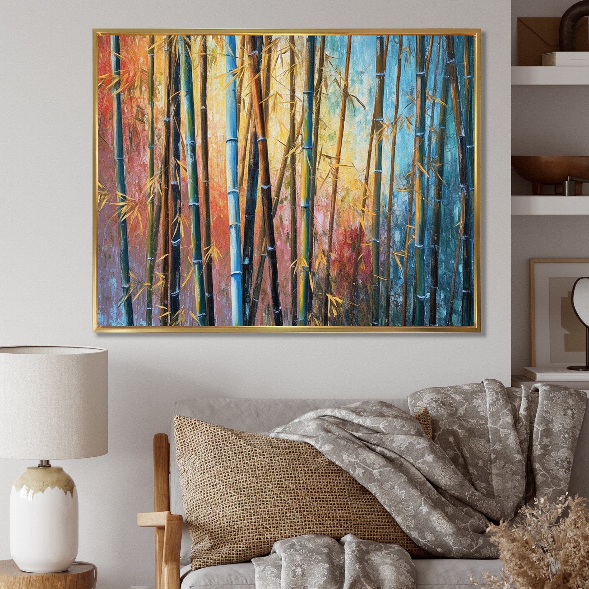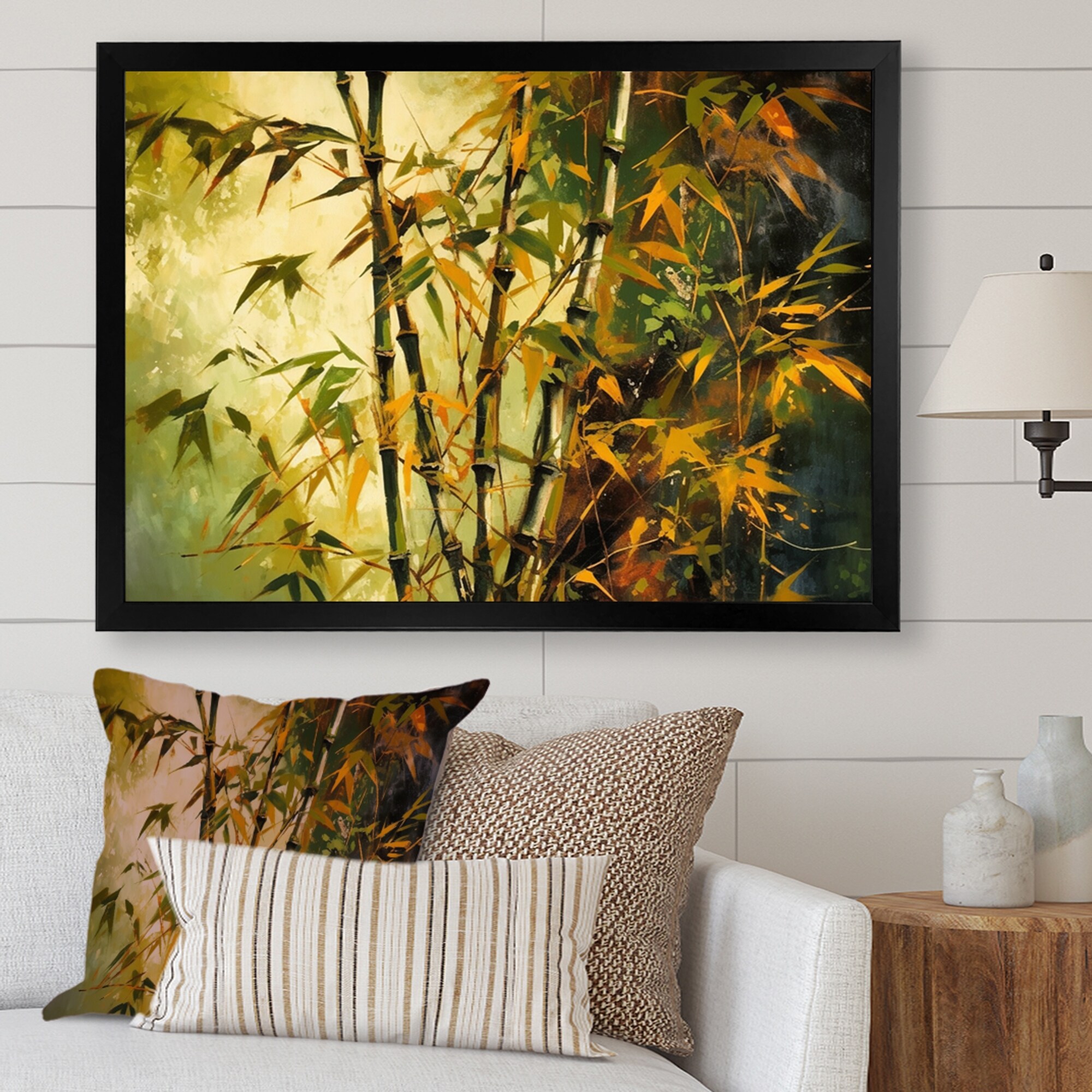 Designart "Green Floral Bamboo Oasis Ii" Floral Framed Canvas Art Print