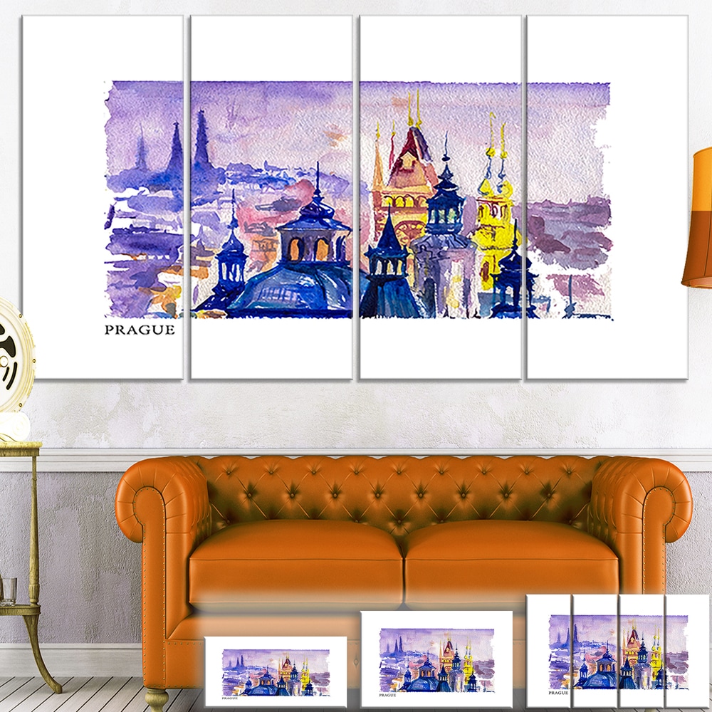 Designart "Prague Vector Illustration" Cityscape Canvas Print - Purple