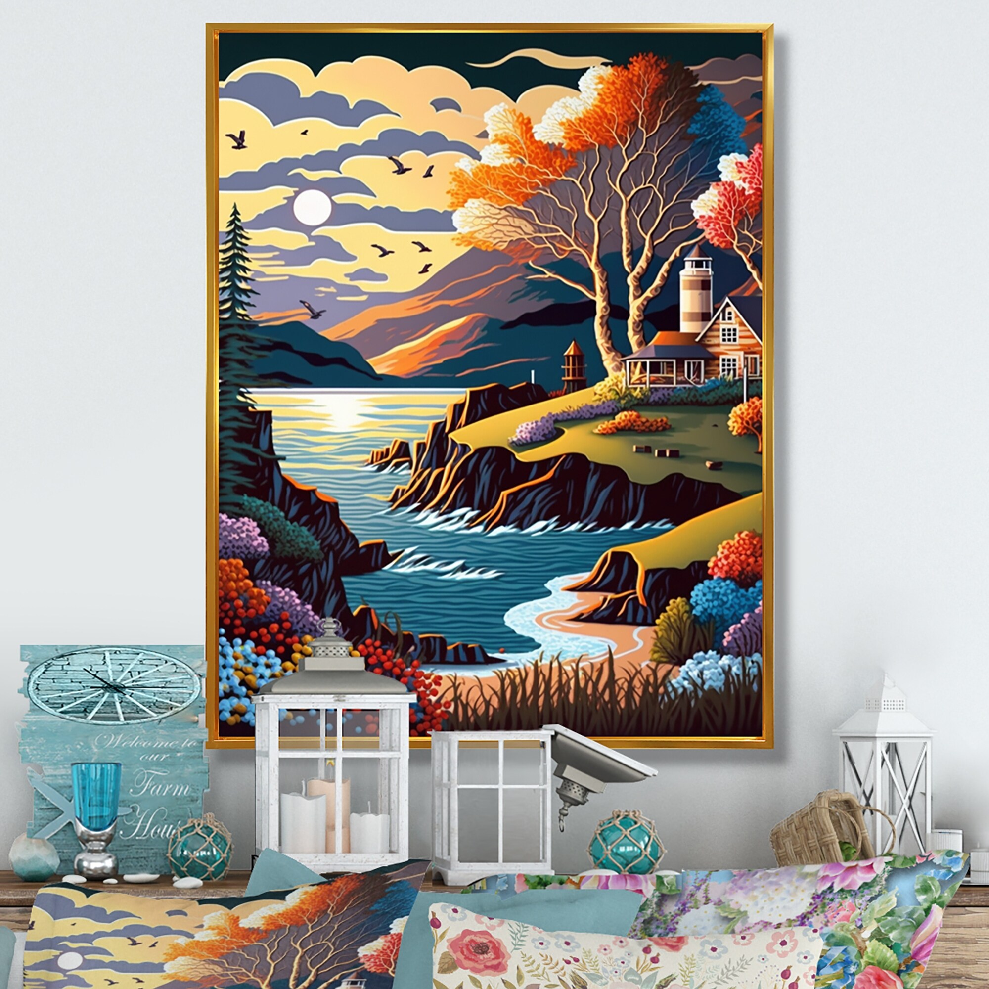 Designart "Modern Sunset in Vector Style II" Landscape Framed Canvas Art Print
