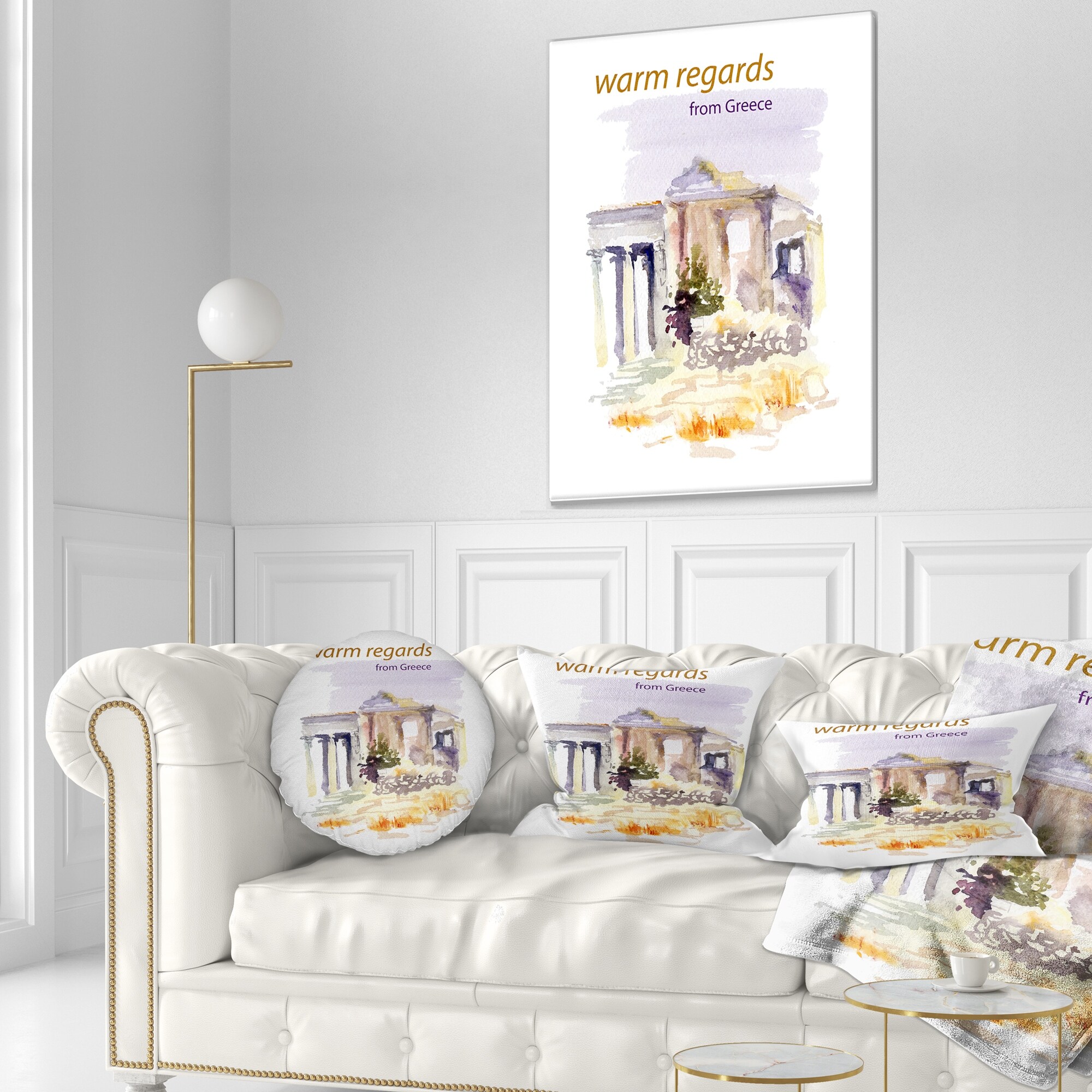 Designart 'Old Greece Vector Illustration' Cityscape Painting Throw Pillow