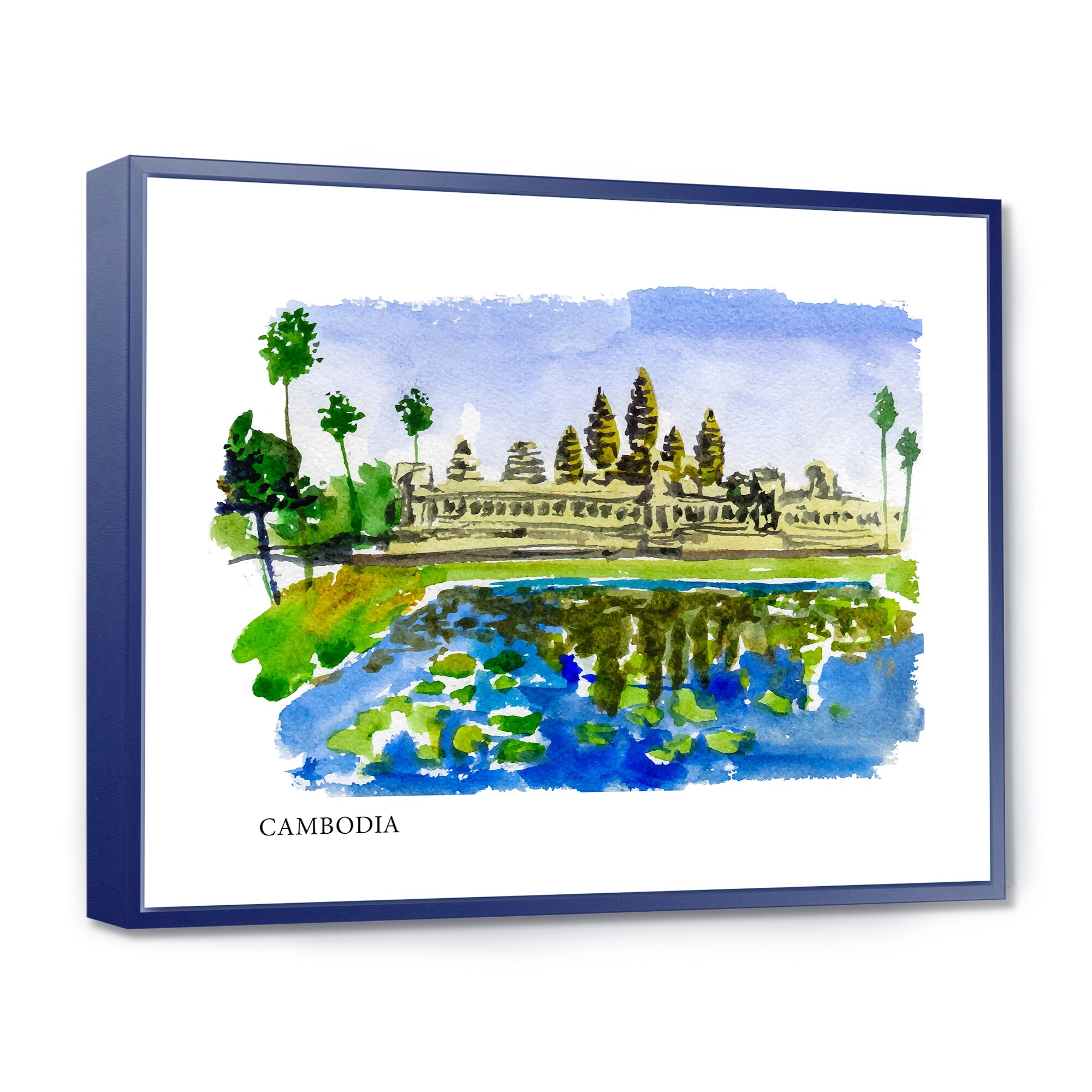 Designart "Cambodia Vector Illustration" Cityscape Framed Canvas Print
