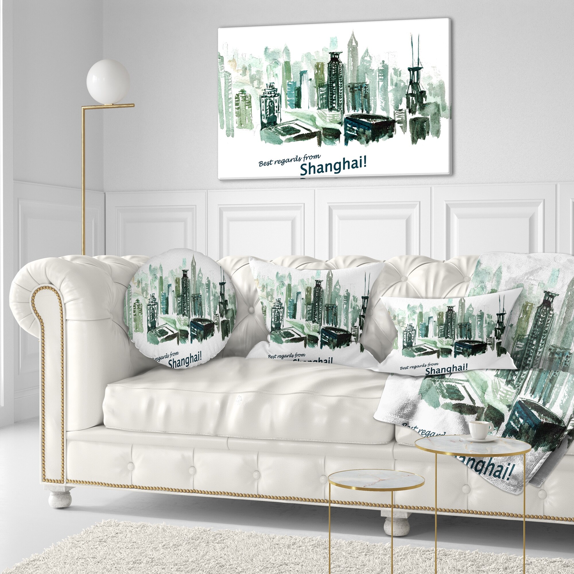 Designart "Shanghai Vector" Cityscape Painting Canvas Print