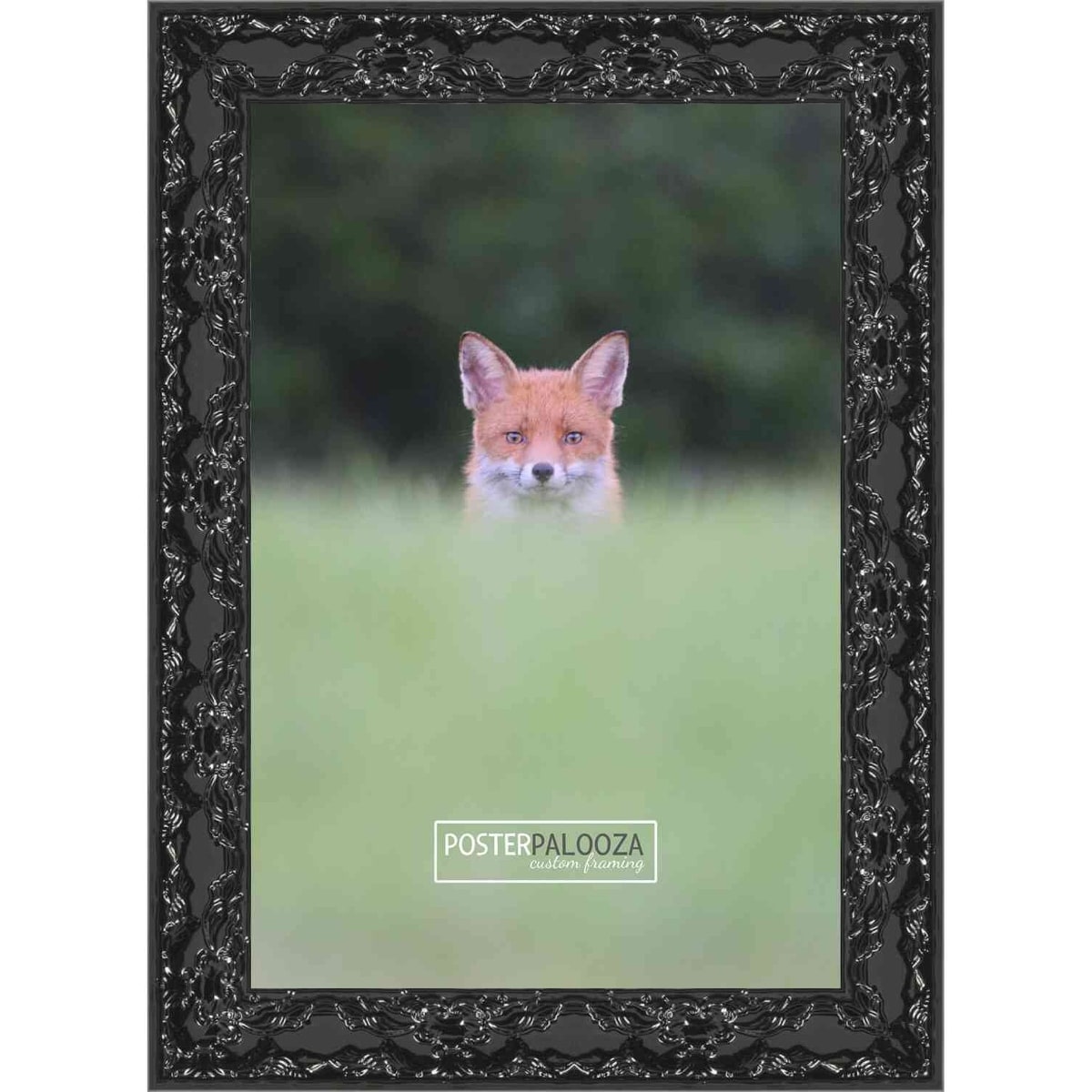 4x10 Ornate Black Complete Wood Picture Frame with UV Acrylic, Foam Board Backing, & Hardware