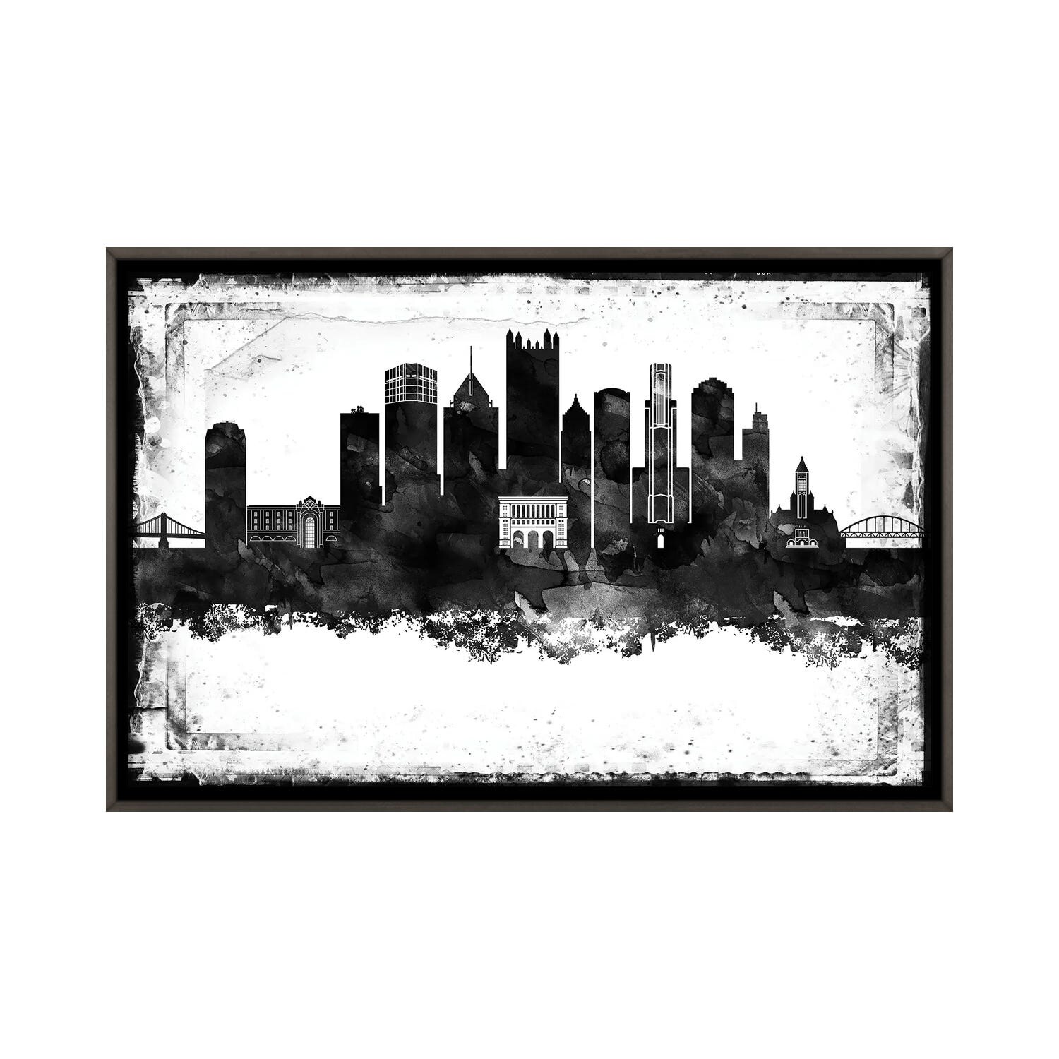 iCanvas "Pittsburgh Black And White Framed Skylines" by WallDecorAddict Framed