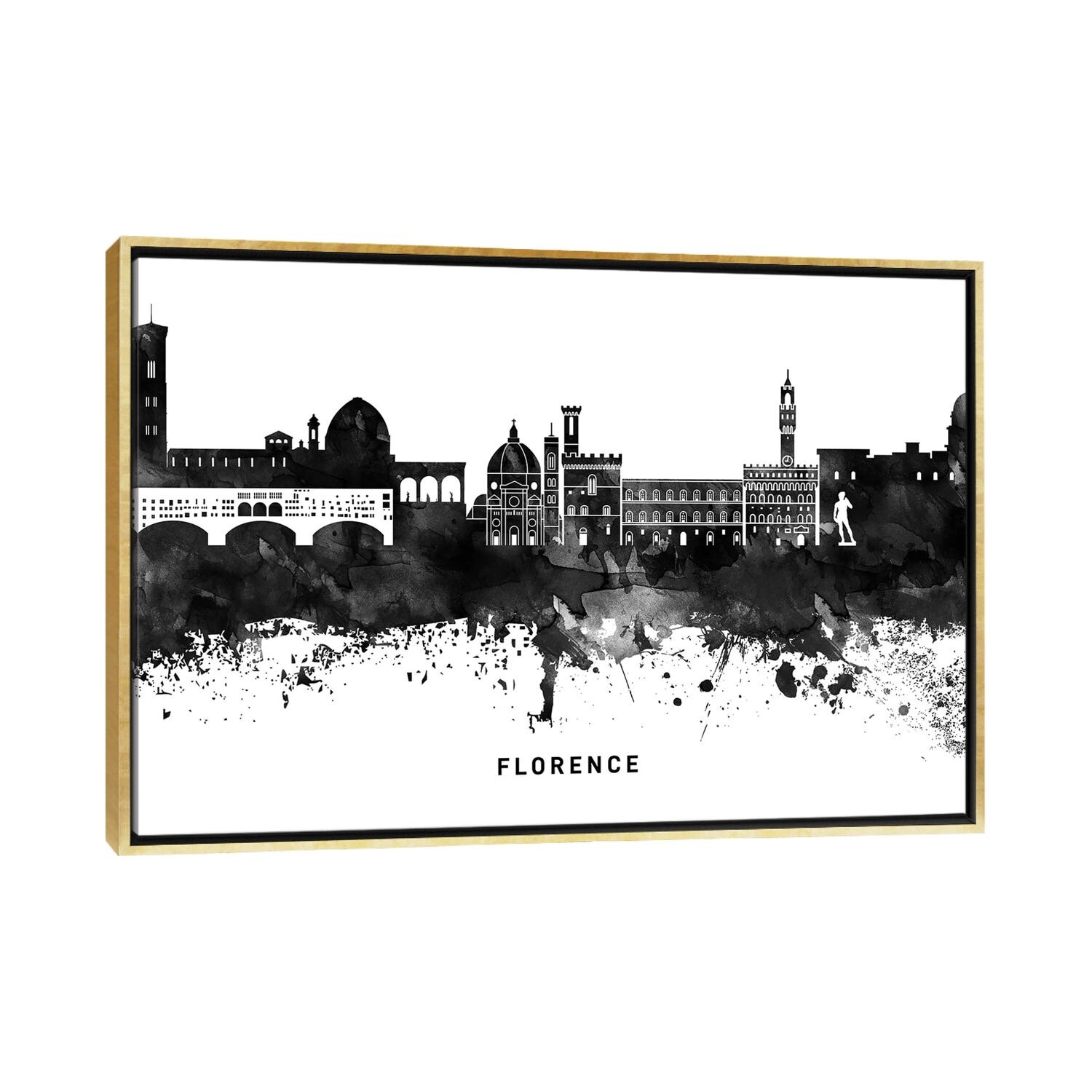 iCanvas "Florence Skyline Black & White" by WallDecorAddict Framed Canvas Print