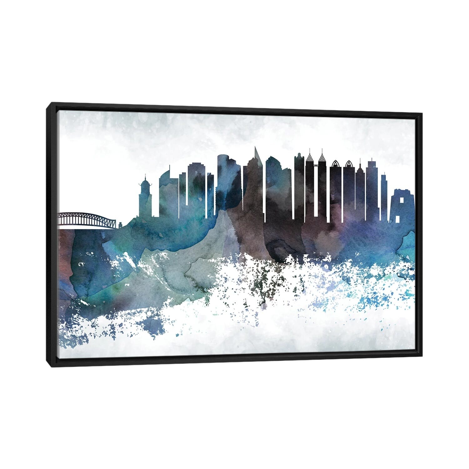 iCanvas "Denver Bluish Skyline" by WallDecorAddict Framed Canvas Print