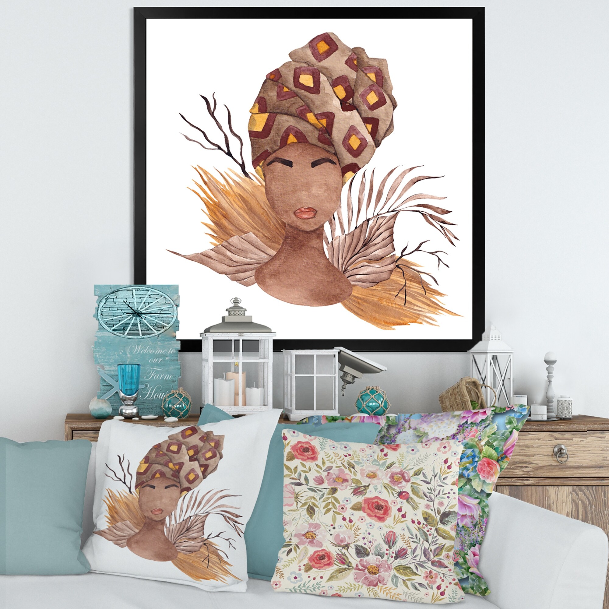 Designart "African American Woman in Turban" Glam Framed Art Print