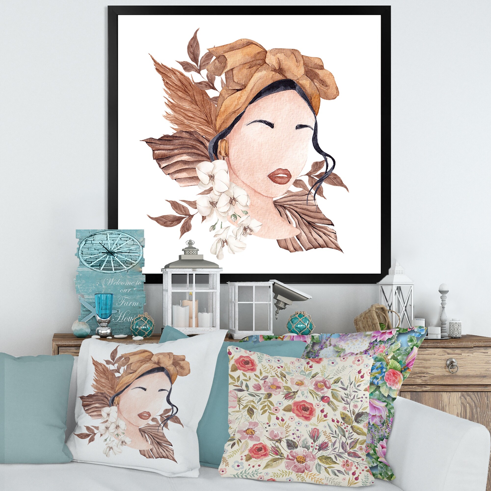 Designart "African American Woman, Dried Flowers, Leaves VI" Glam Framed Art Print