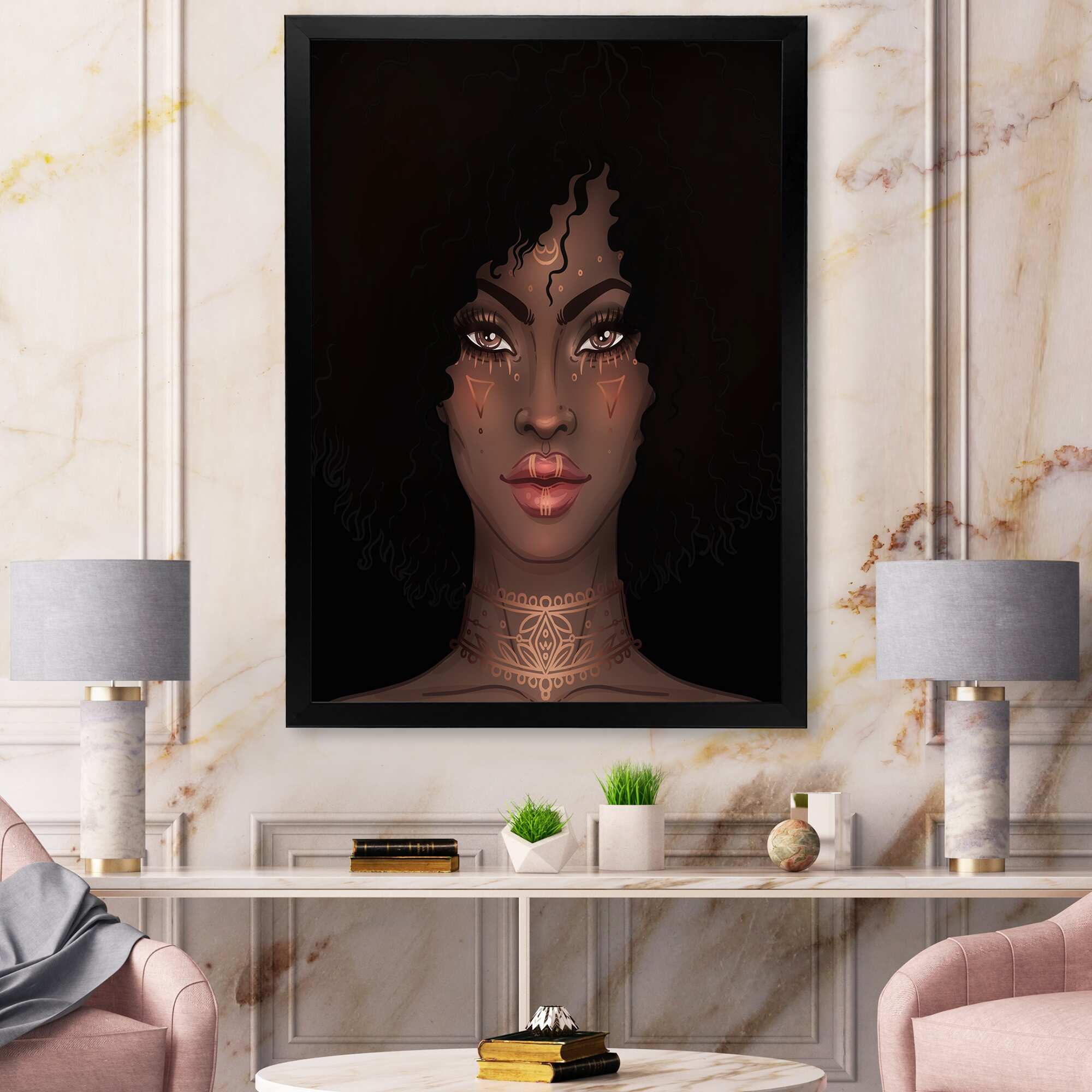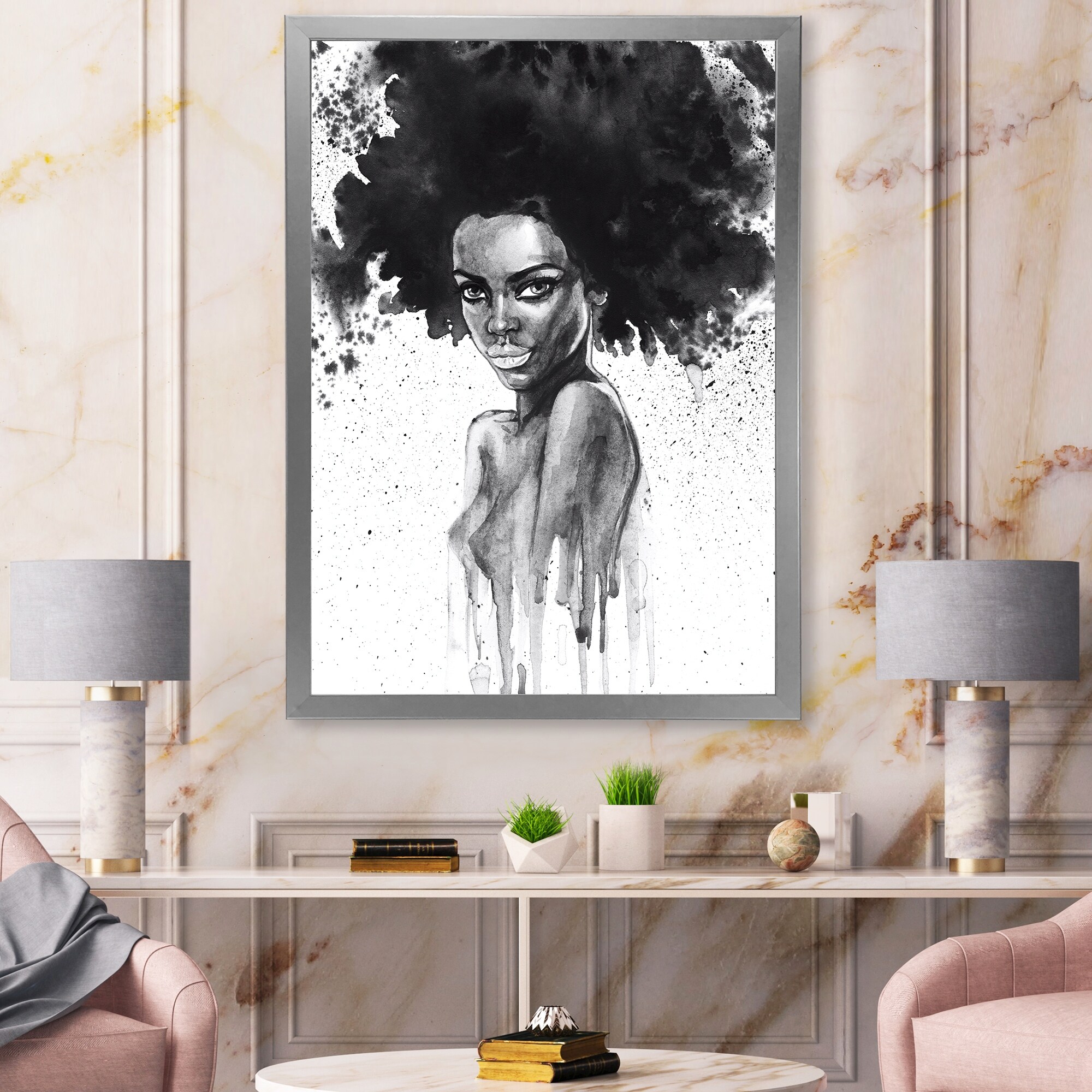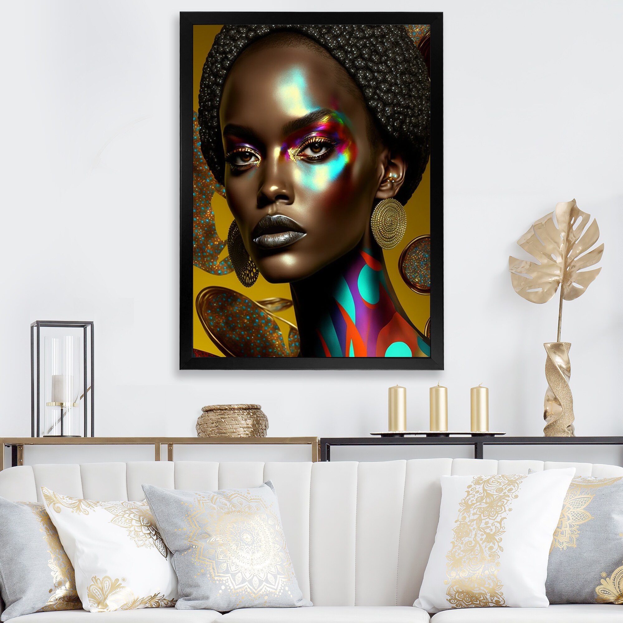 Designart "Portrait Of Glamorous African Lady VI" African American Framed Canvas Wall Art Print