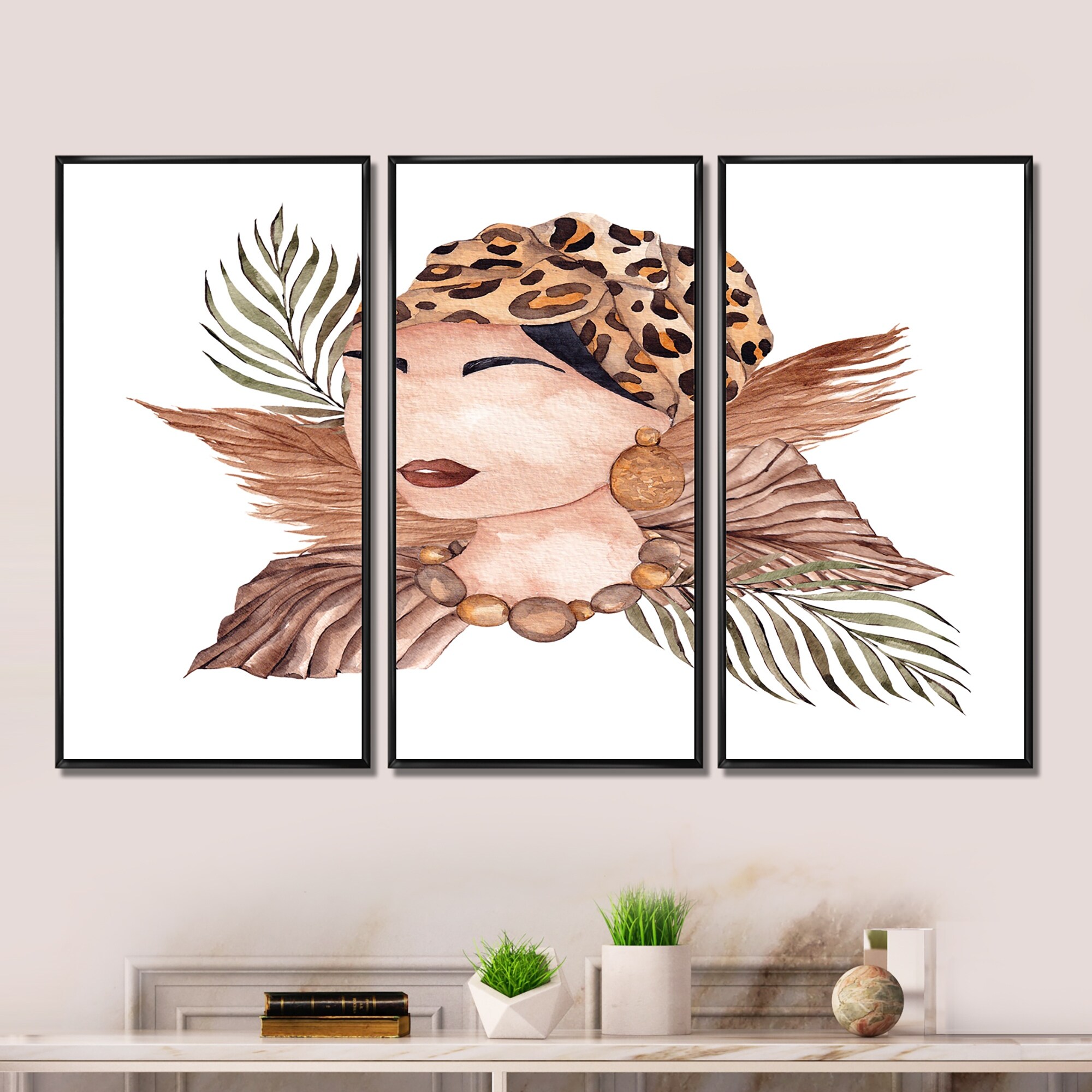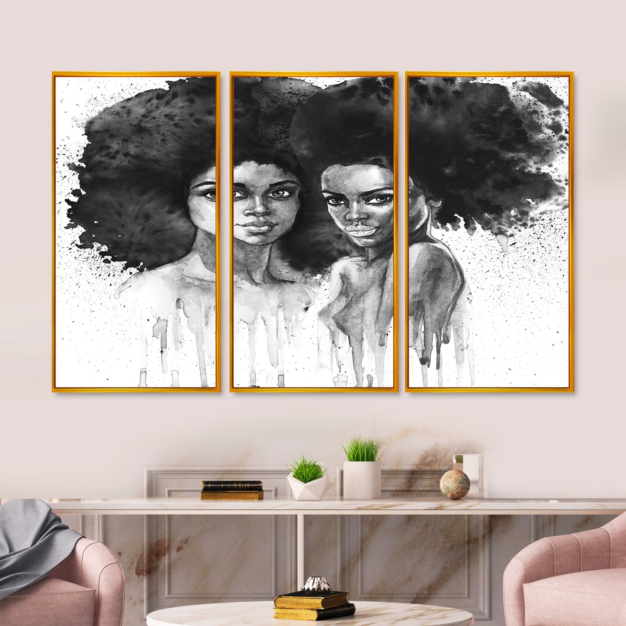 Designart "Portrait of African American Woman VIII" Modern Framed Canvas Wall Art Set of 3 - 4 Colors of Frames