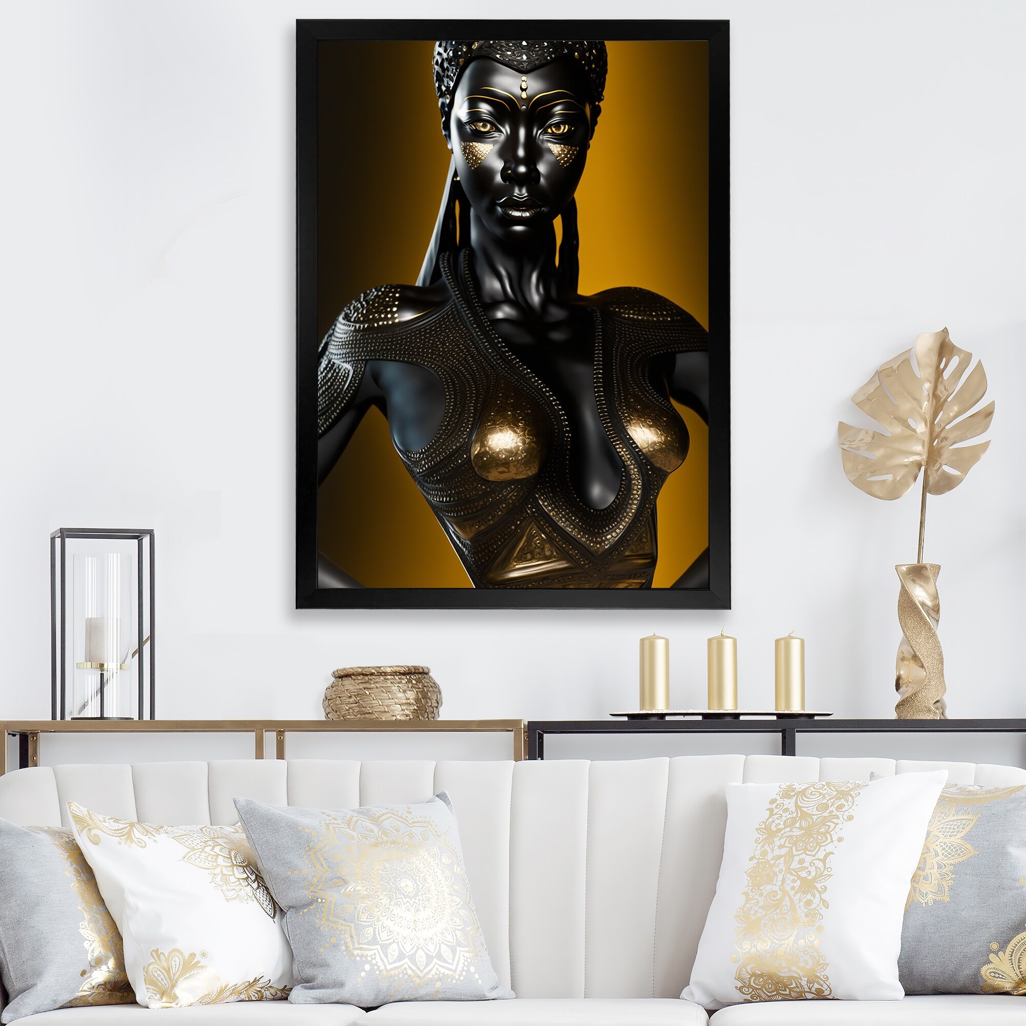 Designart "Porcelain Portrait of Black And Gold African Goddess I" African American Woman Framed Canvas Print
